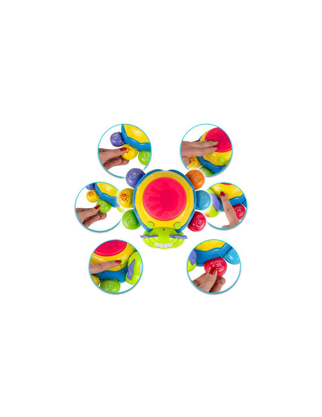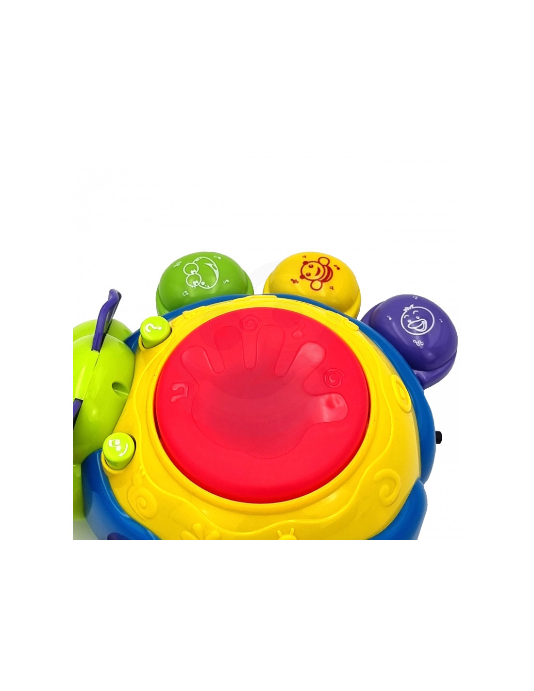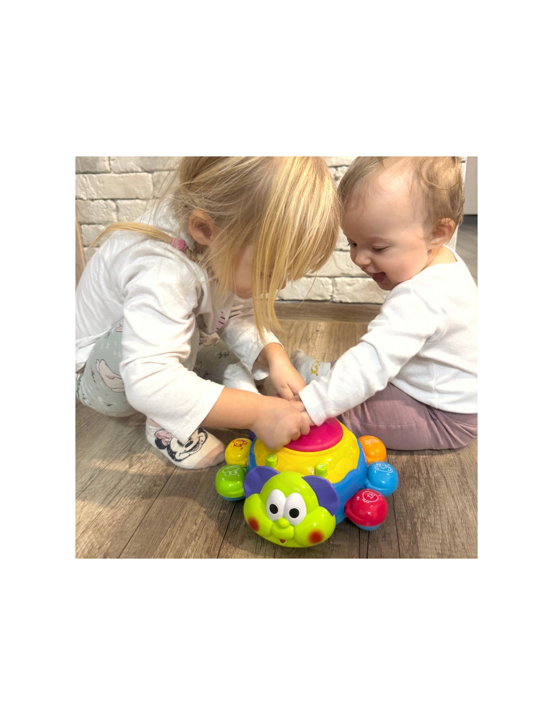 Интерактивная ползающая игрушка "Божья коровка" от бренда WOOPIE - отличный инструмент для обучения первым шагам. Игрушка катается и убегает от малыша, чтобы он захотел начать движение и поймать ее. Специальный датчик позволит Божьей коровке почувствовать препятствие и повернуть в другую сторону. Божья коровка имеет множество развивающих свойств. Каждая ножка имеет свой цвет и свое животное, которое можно изучать вместе с ребенком. Кроме того, при нажатии на ножку Вы услышите название животного и звук, связанный с ним. Названия животных даны на английском языке, что позволит Вашему ребенку выучить первые слова. Световые и звуковые эффекты возникают, когда Вы ударяете по барабану в верхней части игрушки. Игрушка развивает ребенка с самого раннего возраста m.in. улучшает концентрацию внимания, зрительно-моторную координацию и когнитивные навыки.