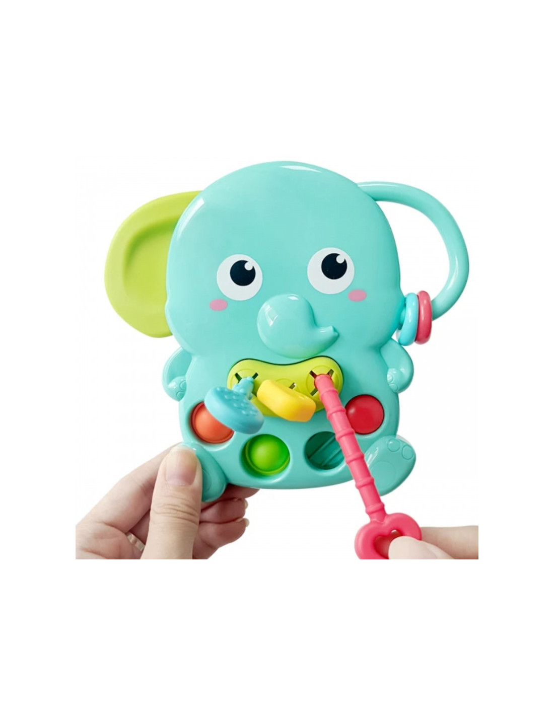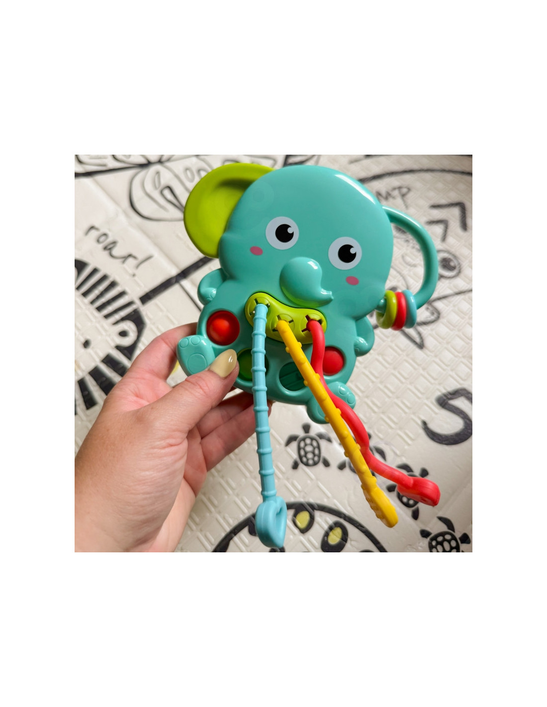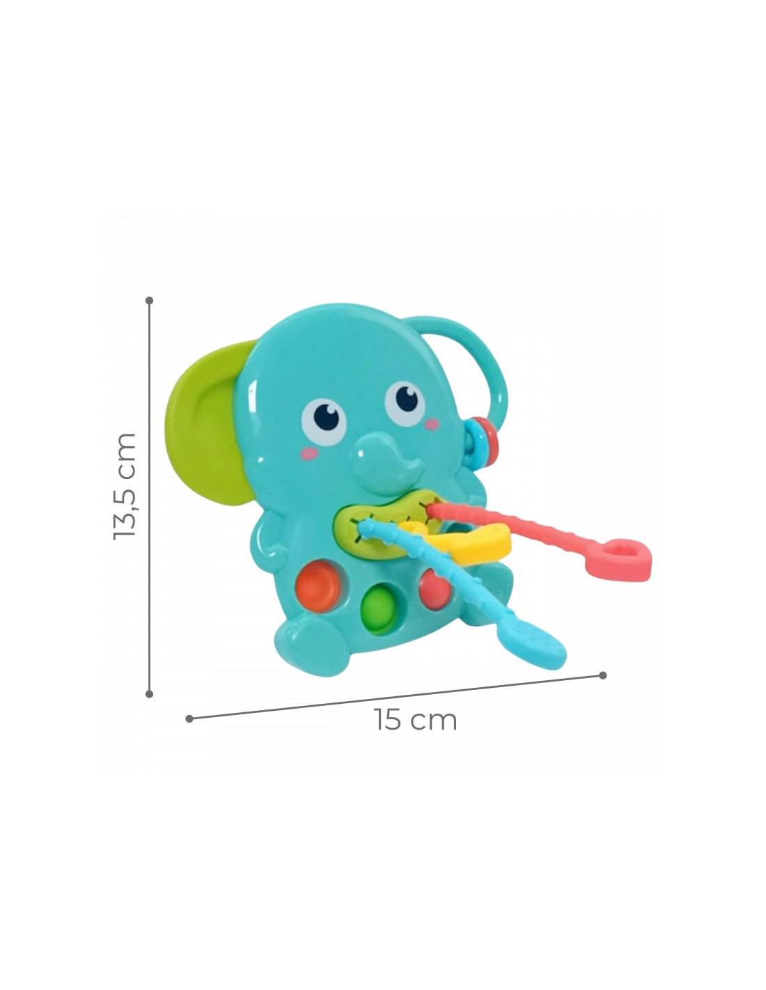 Познакомьтесь с очаровательным бирюзовым слоном от Woopie! – идеальным спутником вашего малыша в путешествии по увлекательному миру чувств! Эта инновационная игрушка Монтессори, разработанная для самых маленьких исследователей (от 18 месяцев), – настоящая сокровищница сенсорной стимуляции. Очаровательный слонёнок поощряет прикосновения, тягу, скольжение и кусание, способствуя развитию моторики, зрительно-моторной координации и любопытства. Цветные верёвочки, мягкие прорезыватели для зубов и подвижные детали сделают каждое мгновение, проведённое со слонёнком, наполненным радостью и новыми открытиями. Подарите своему ребёнку лучшее начало обучения через игру! Характеристики:
