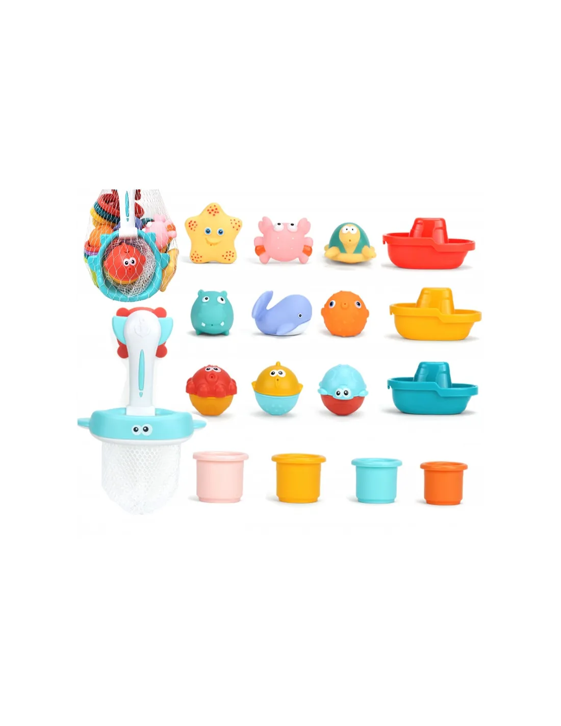 Этот набор для водных игр от WOOPIE станет отличным дополнением к купанию вашего ребенка. Его можно использовать как для купания, так и для игр в песке . В набор входят: рыболовная сеть , 3 кораблика , 4 стаканчика, которые можно складывать друг на друга , и 9 формочек/стаканчиков для перелива , в зависимости от того, играет ли ребенок в воде или песке. Ваш ребенок может проводить различные эксперименты во время купания! Этот набор не только сделает купание или игру в песке более увлекательными, но и разовьет его мелкую моторику и познание окружающего мира . Кроме того, он поможет ему сосредоточиться и не отвлекаться во время мытья.