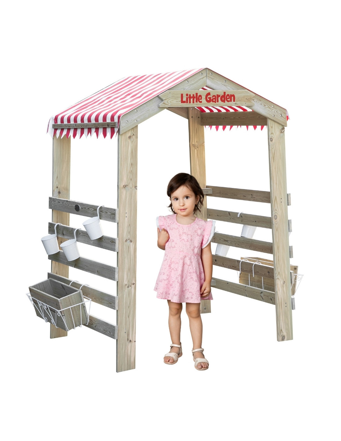 Откройте для вашего ребенка дверь в мир, полный природы и фантазии, с деревянными садовыми воротами CLASSIC WORLD! Эта очаровательная конструкция в деревенском стиле с красно-белой полосатой крышей станет идеальным дополнением к любому домашнему саду, игровой площадке в детском саду или учебному уголку. Оснащенная практичными полками и крючками для инструментов и цветочных горшков, она побуждает малышей играть в садовников, продавцов фруктов и овощей или просто открывает волшебные врата в их собственный воображаемый мир. Прочная деревянная конструкция обеспечивает безопасность и долговечность, гарантируя часы активных, развивающих игр на свежем воздухе.