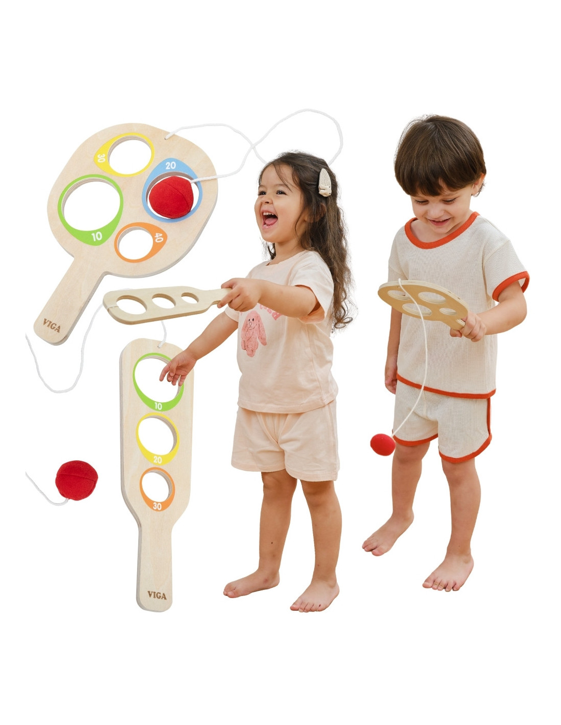 VIGA Wooden Catch the Ball Scoring Paddle Set