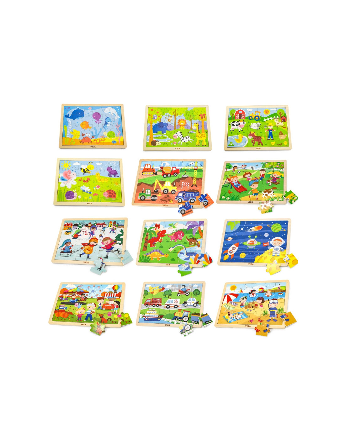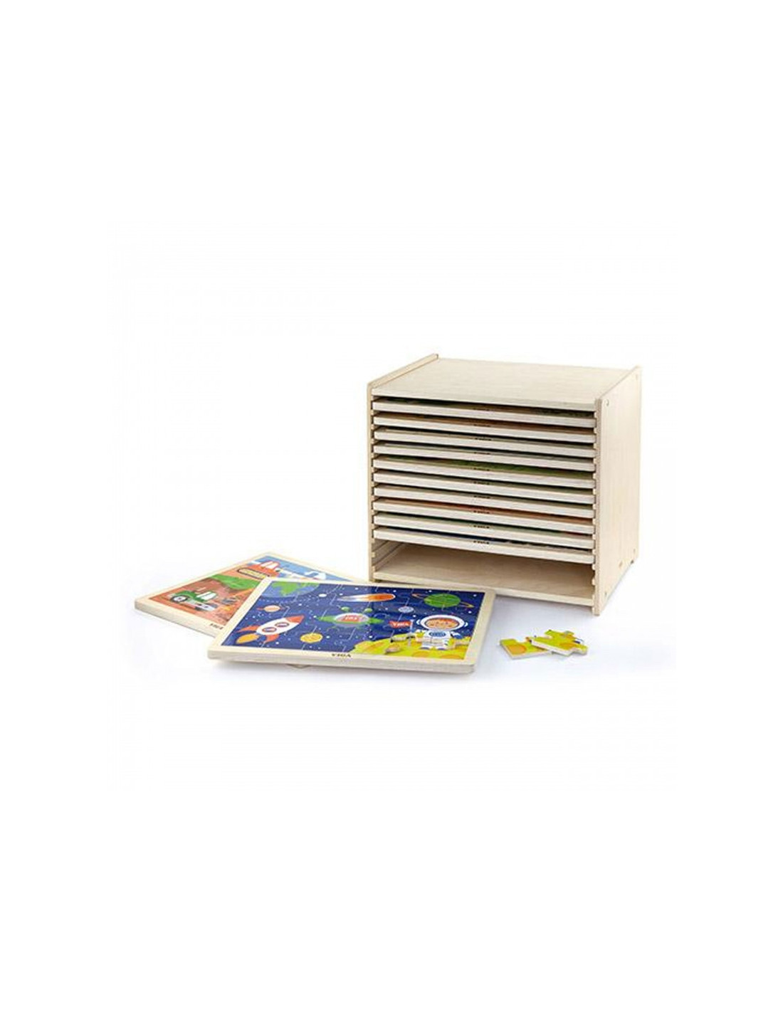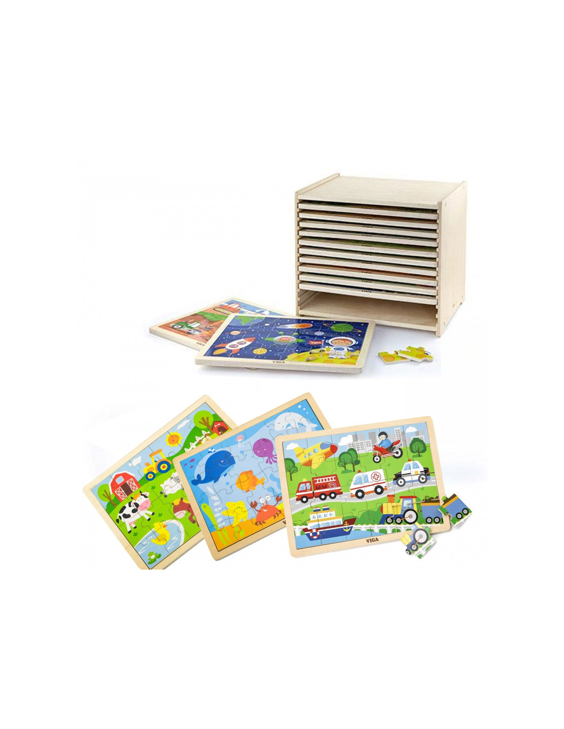 Набор деревянных пазлов Viga, 12 пазлов по 24 детали в каждом, на подставке