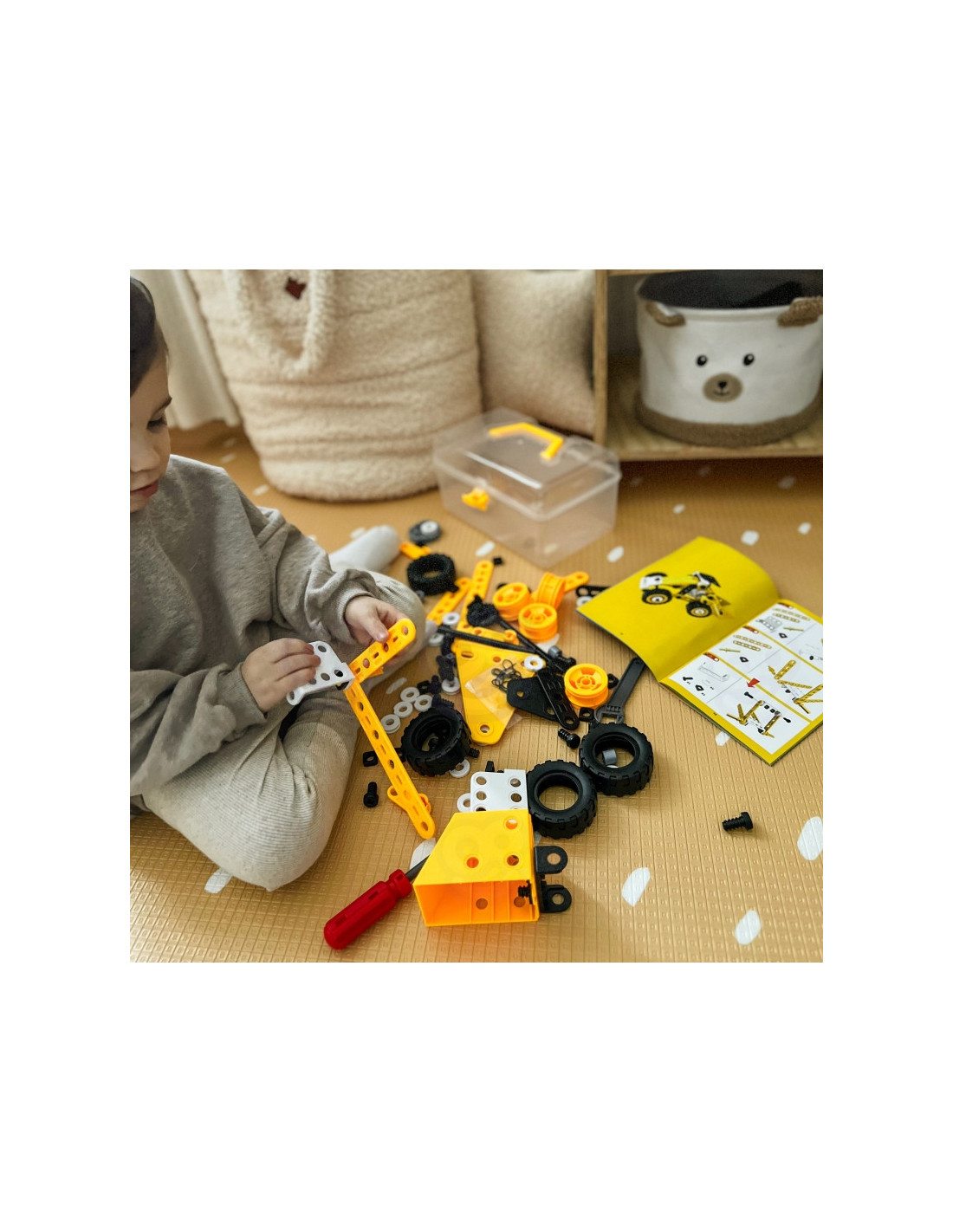 Этот набор строительной техники от WOOPIE включает в себя 100 деталей, позволяющих юным строителям собрать 8 различных моделей, включая кран, ветряную мельницу, грузовик и другие строительные машины! Благодаря простой системе «винт-винт» дети легко погрузятся в увлекательный мир строительства, развивая мелкую моторику рук, логическое мышление и пространственное воображение. Эта игрушка обучает принципам строительства машин и механизмов, а также знакомит детей с миром инструментов и их безопасным использованием.
