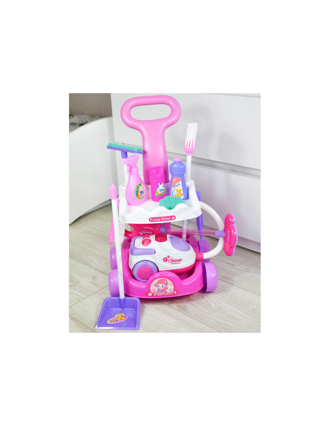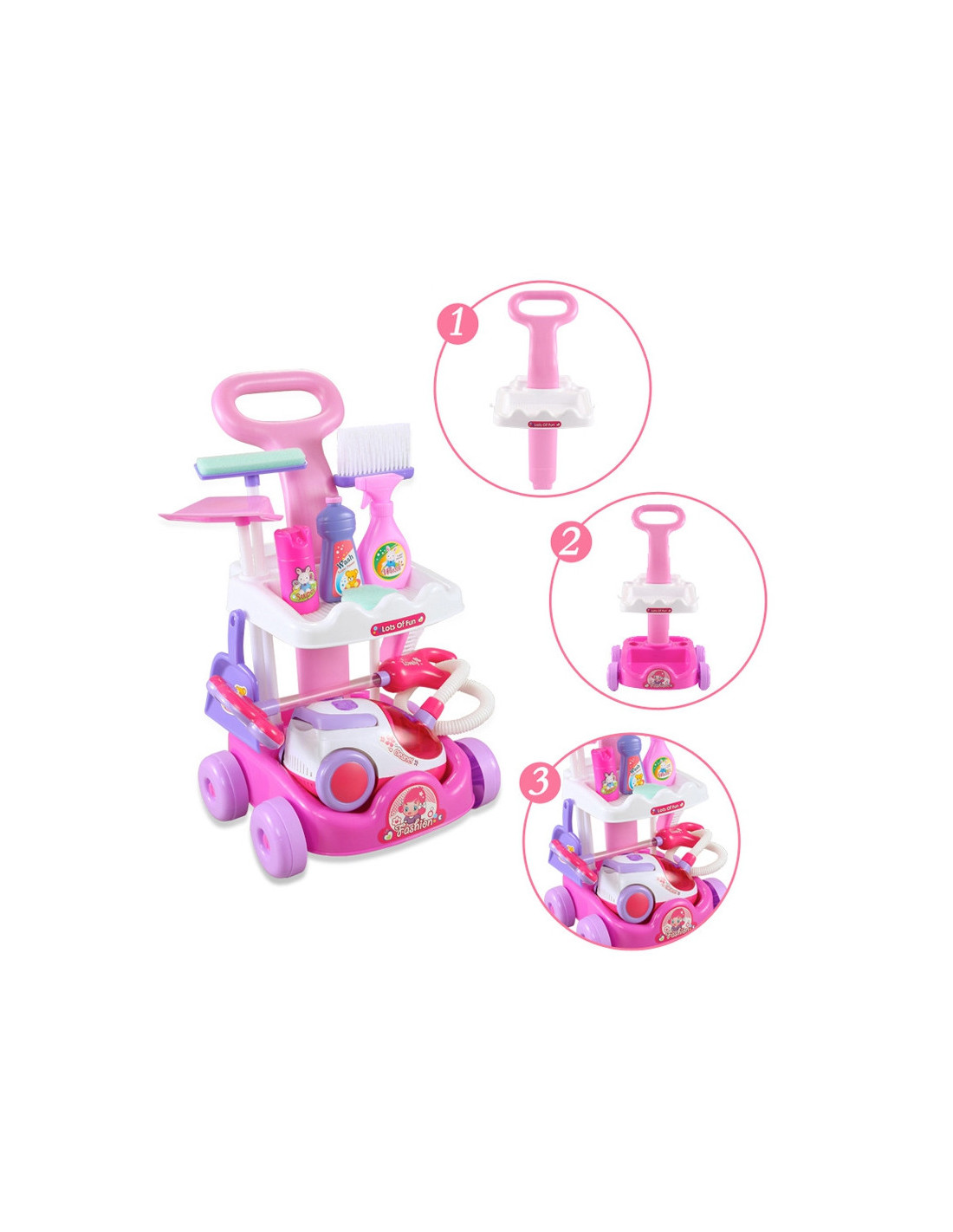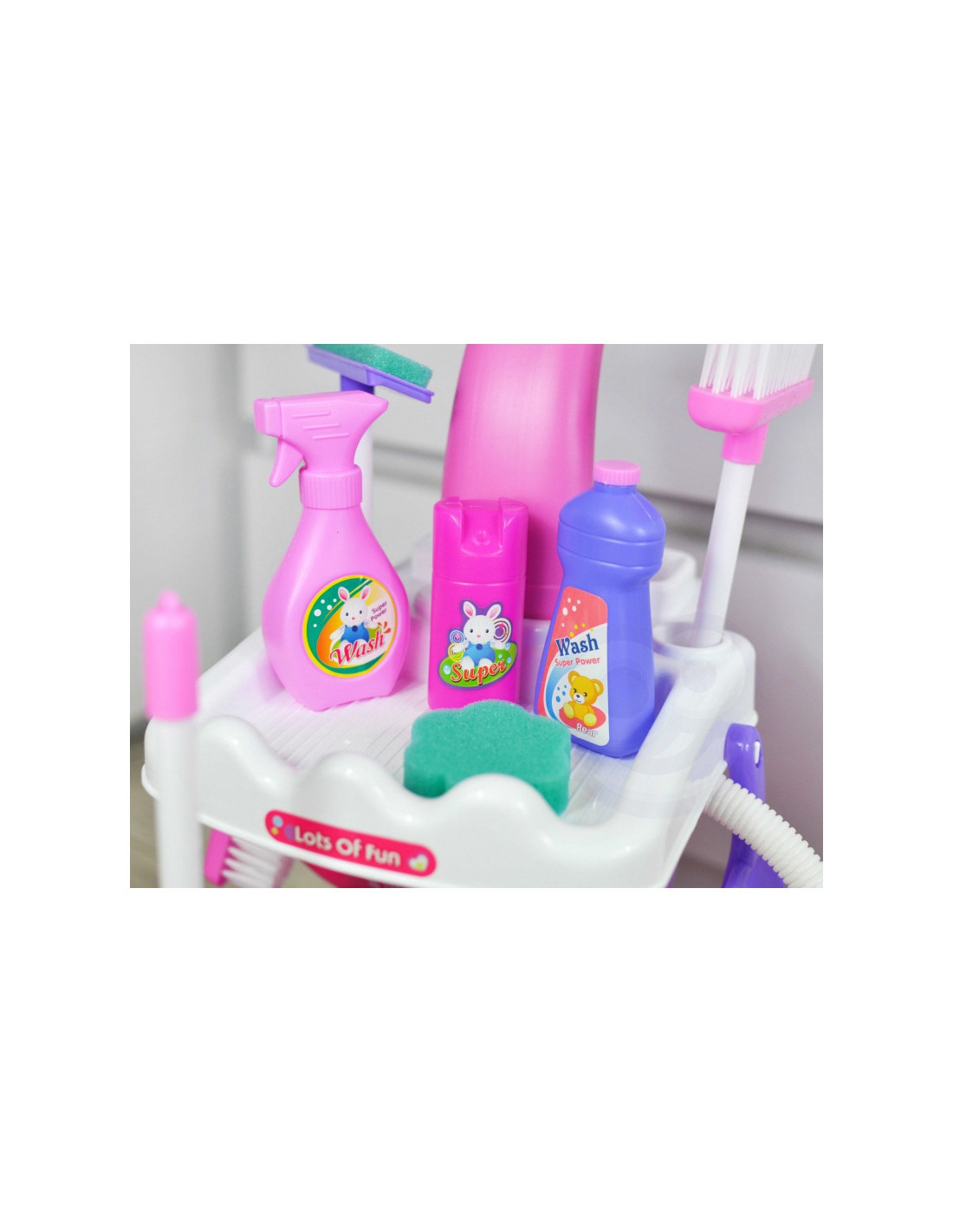 Набор для уборки от известного бренда Woopie — идеальный подарок для маленькой девочки. Этот высокопрофессиональный набор имитирует настоящую взрослую уборочную технику. Розово-белая тележка оснащена дополнительными аксессуарами, чтобы дети могли помогать родителям с уборкой. Пылесос оснащён выключателем и индикатором питания. Игра с уборкой с самого раннего возраста — отличный способ привить привычку к чистоте. Малыши любят подражать взрослым. С этим набором это будет гораздо проще! Характеристики: