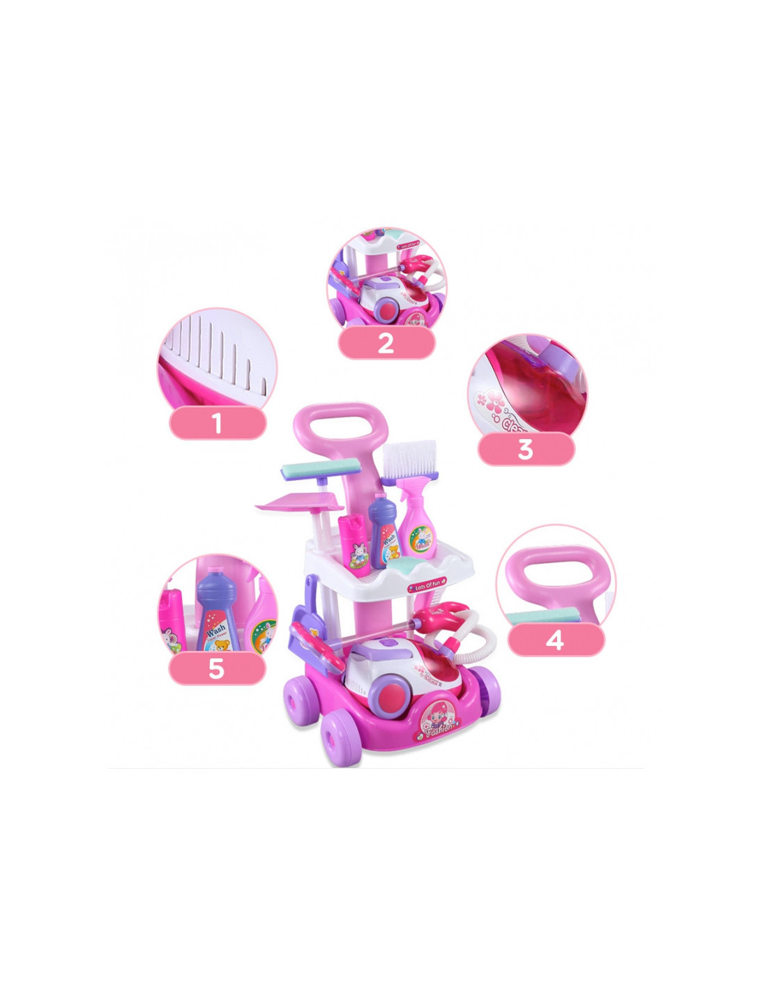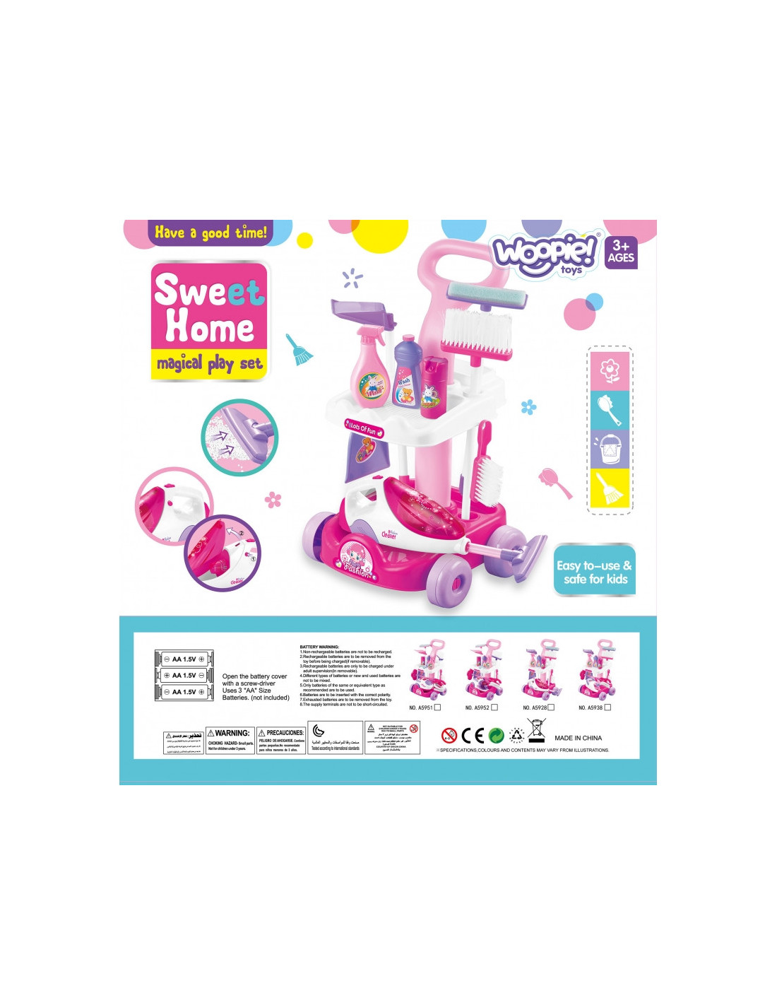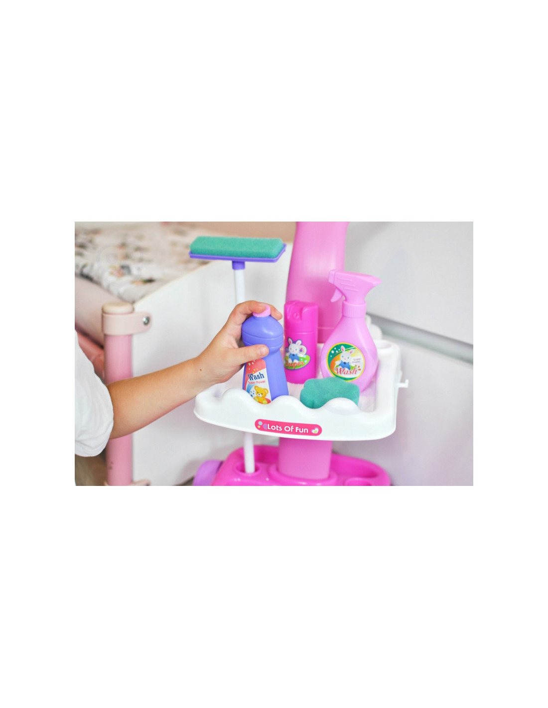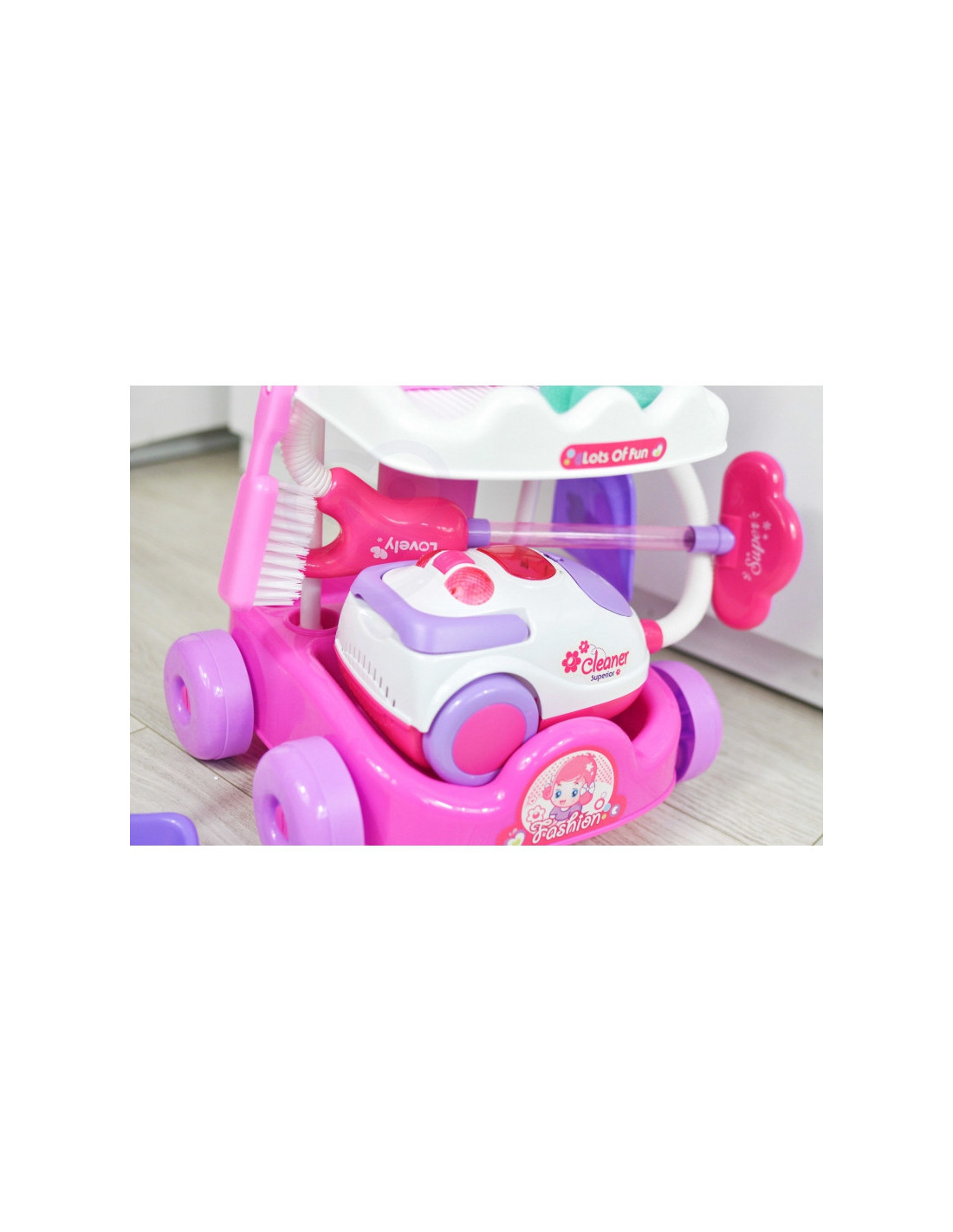 Набор для уборки от известного бренда Woopie — идеальный подарок для маленькой девочки. Этот высокопрофессиональный набор имитирует настоящую взрослую уборочную технику. Розово-белая тележка оснащена дополнительными аксессуарами, чтобы дети могли помогать родителям с уборкой. Пылесос оснащён выключателем и индикатором питания. Игра с уборкой с самого раннего возраста — отличный способ привить привычку к чистоте. Малыши любят подражать взрослым. С этим набором это будет гораздо проще! Характеристики:
