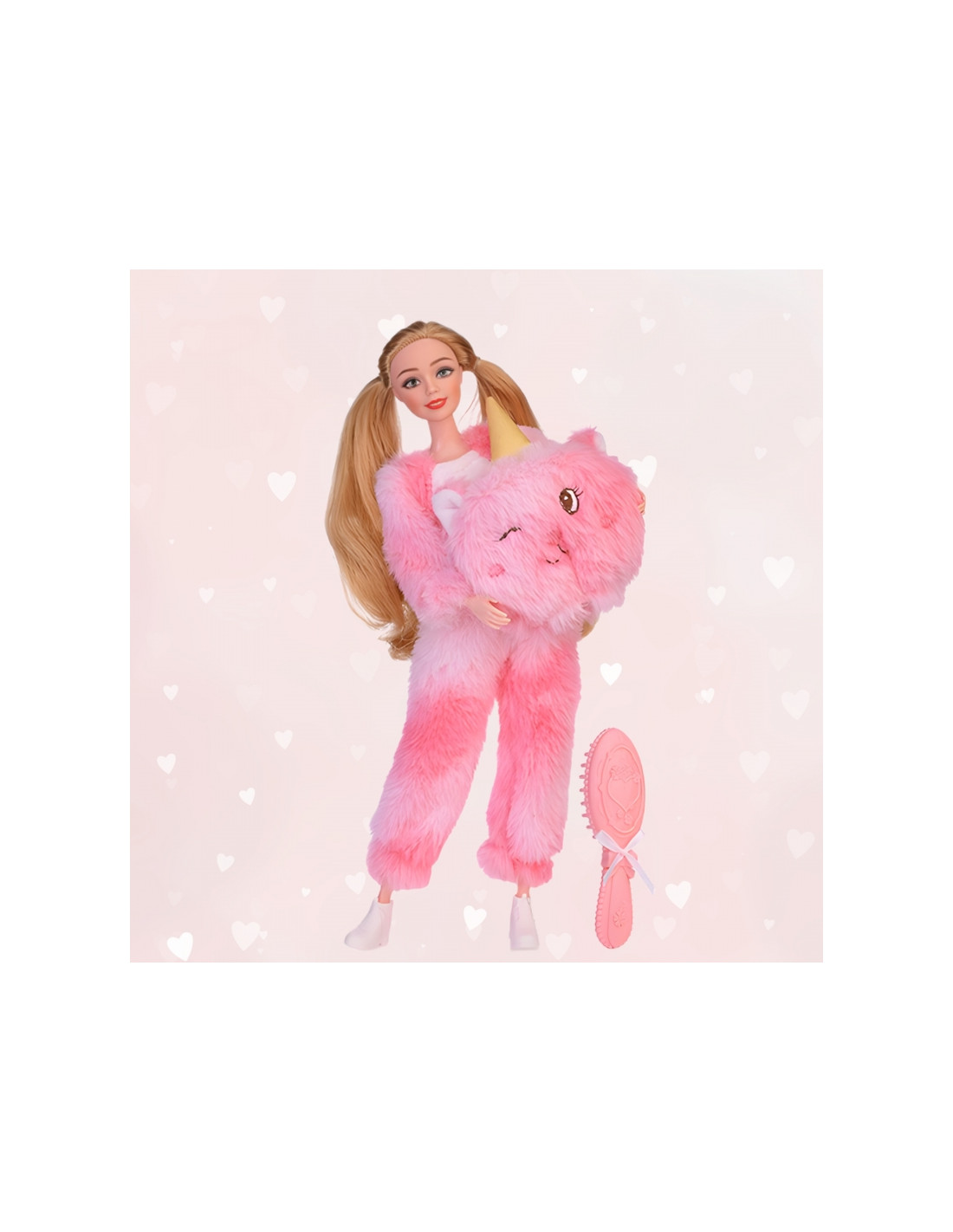 Познакомьтесь с очаровательной куклой Эми от WOOPIE ROYAL, которая в восторге от своего нежно-розового наряда! Мягкий пушистый комбинезончик с капюшоном в форме животного делает эту куклу невероятно уютной и модной. Она станет идеальным компаньоном для игр, объятий и создания уникальных историй! Благодаря высококачественной обработке и прекрасным деталям Эмили станет любимой куклой каждой девочки. С этой куклой веселье никогда не заканчивается — она воплощение настоящей моды и очаровательного стиля!