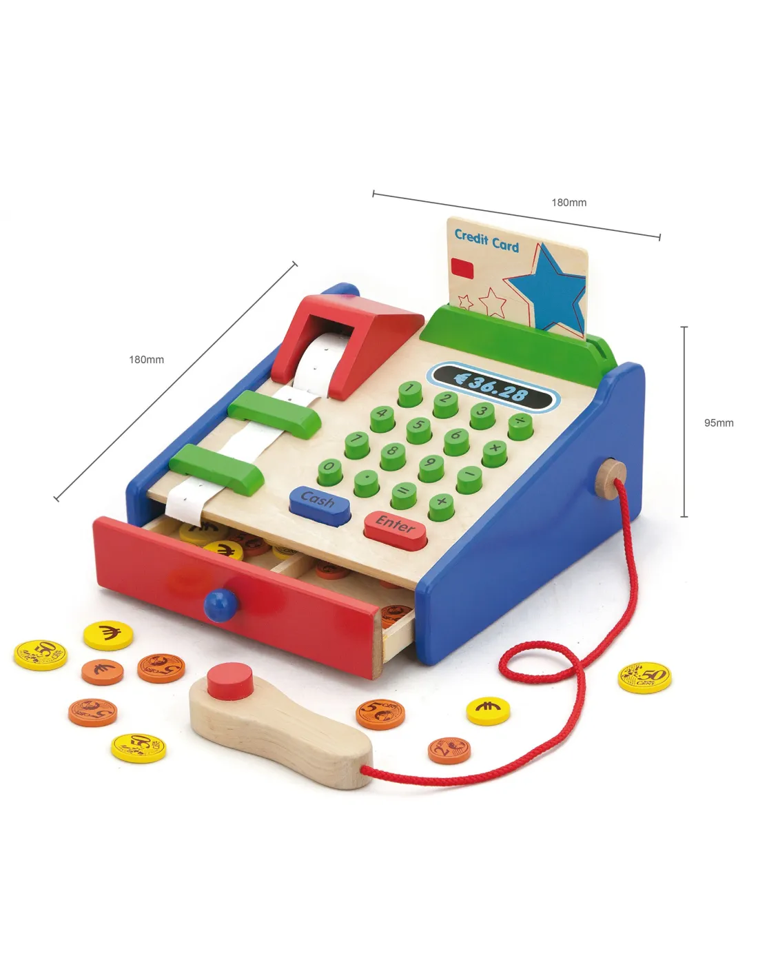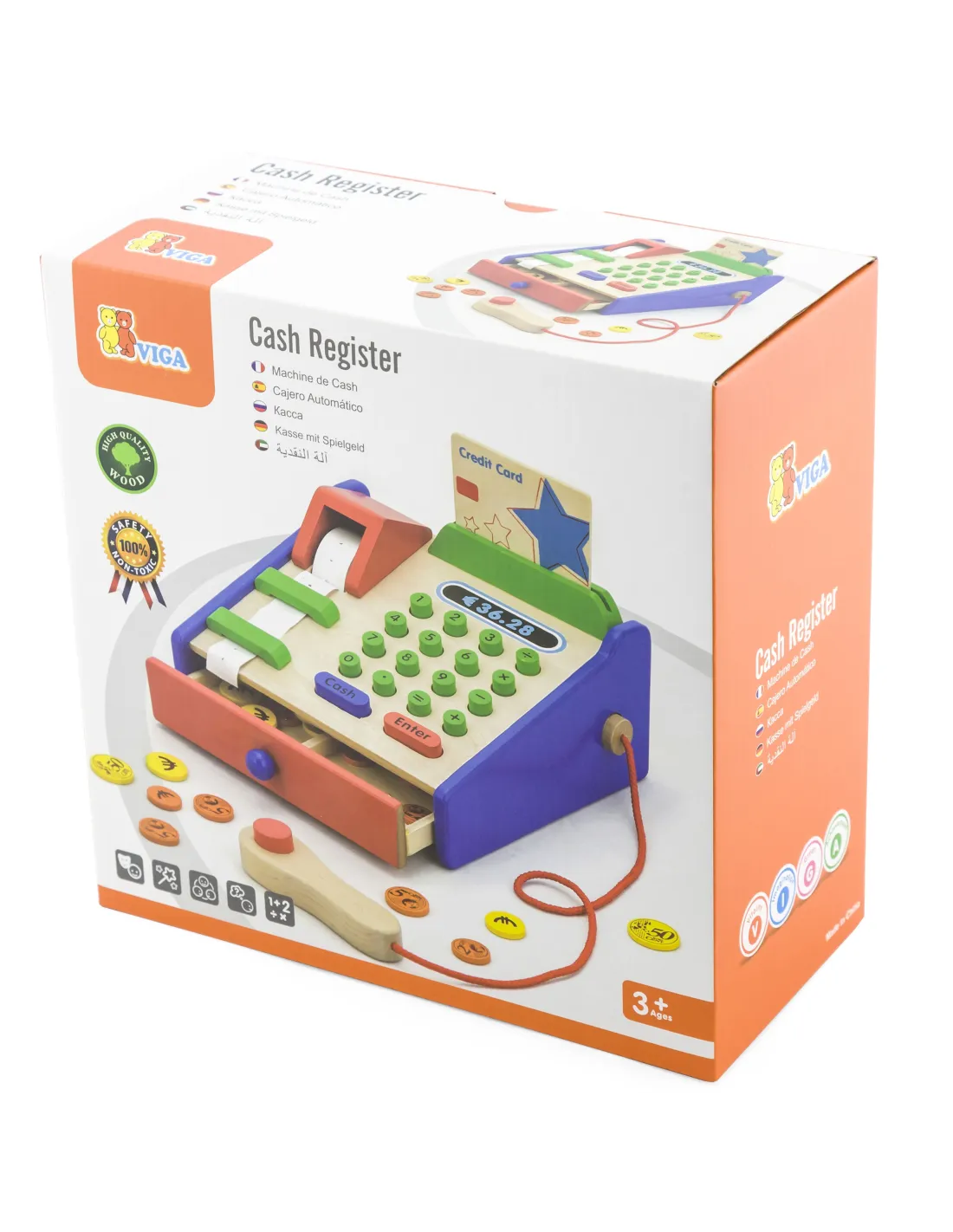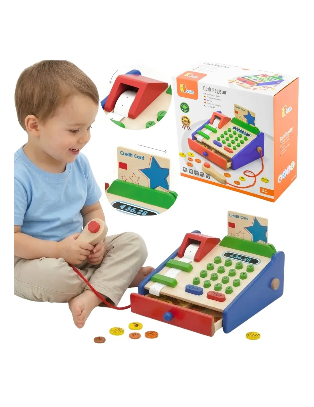 VIGA Wooden Cash Register with Montessori Scanner Accessories