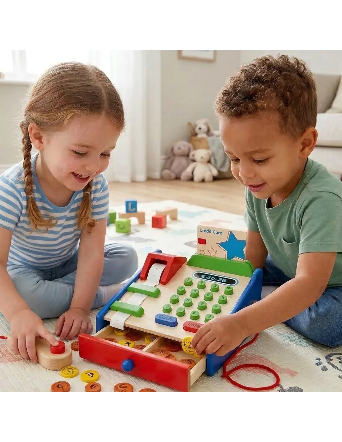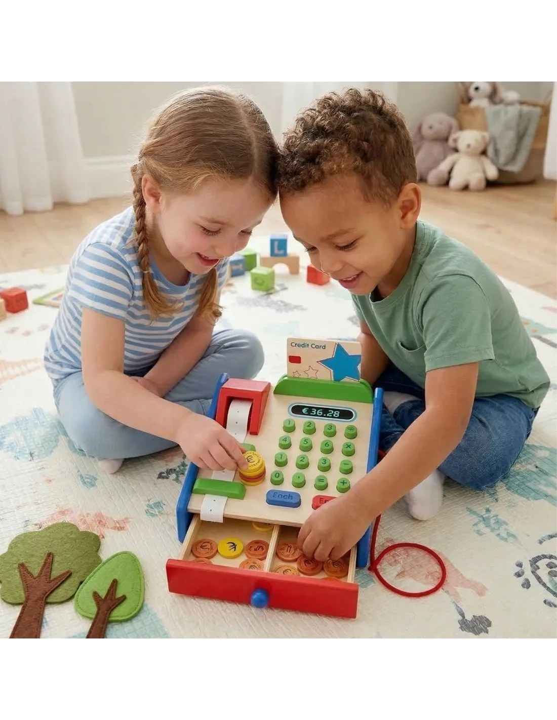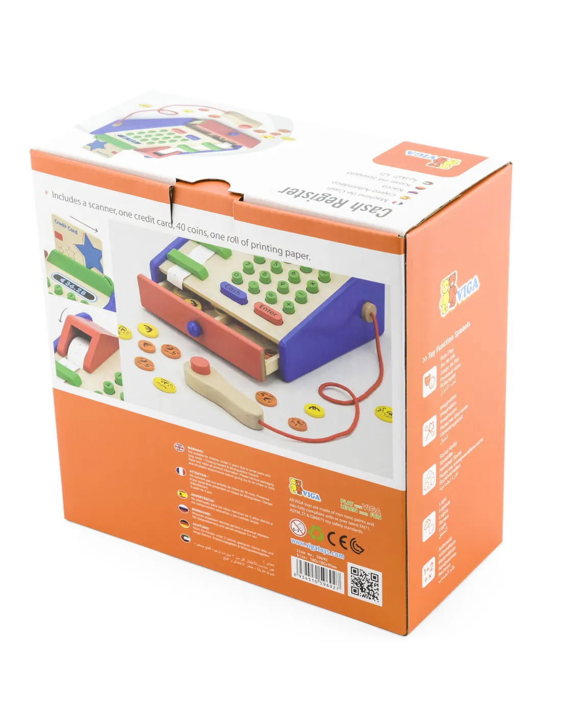VIGA Wooden Cash Register with Montessori Scanner Accessories