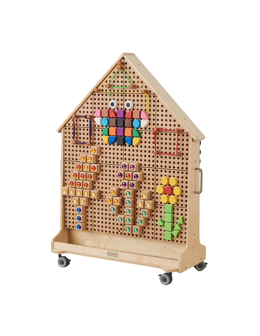 Свободно стоящая доска STEM в форме дома — это идеальное введение в мир STEM. Эту замечательную образовательную и научную доску можно легко перемещать благодаря колесикам. Эта доска поможет вашему малышу исследовать мир механизмов, физики, математики и многих других увлекательных тем. Специальные штифты и красочные элементы позволяют ребенку создавать уникальные конструкции и замечательные дизайны.