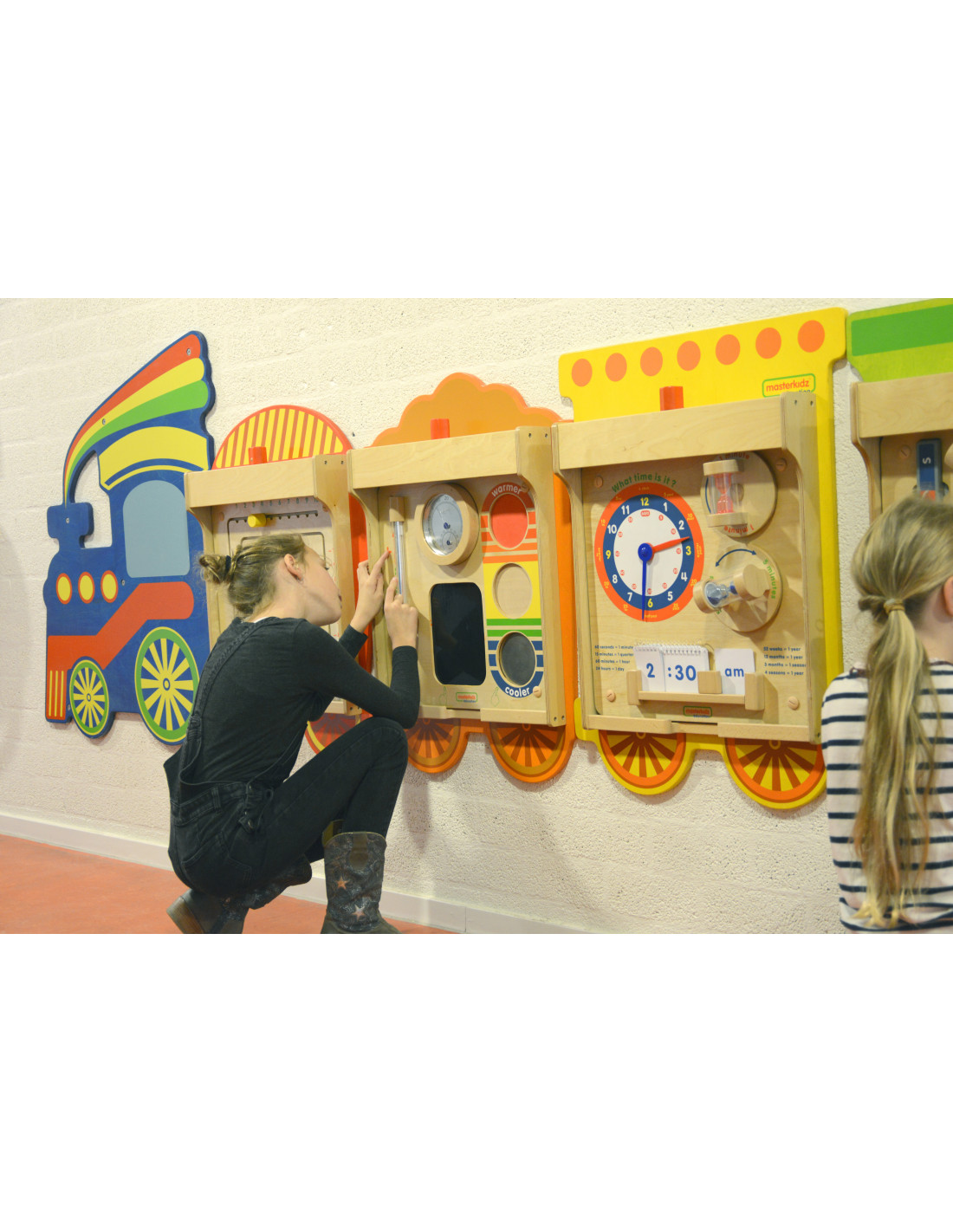 Система имеет пять рамок для досок. Снятие одной и замена другой занимает менее минуты. Учителя могут свободно менять учебные пособия между уроками, выбирая, например, игрушки из определенной категории: сенсорные, на ловкость, математические и т. д.