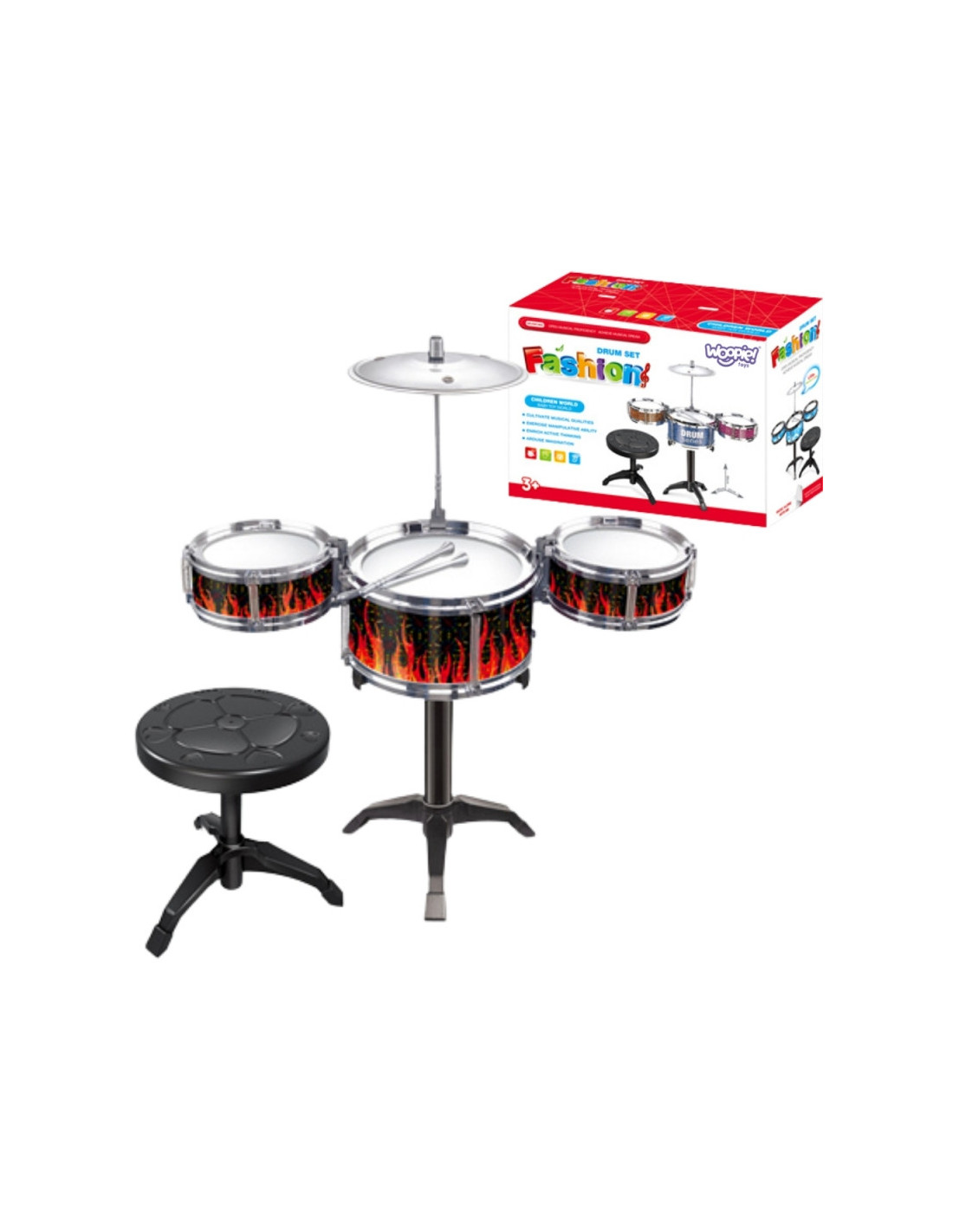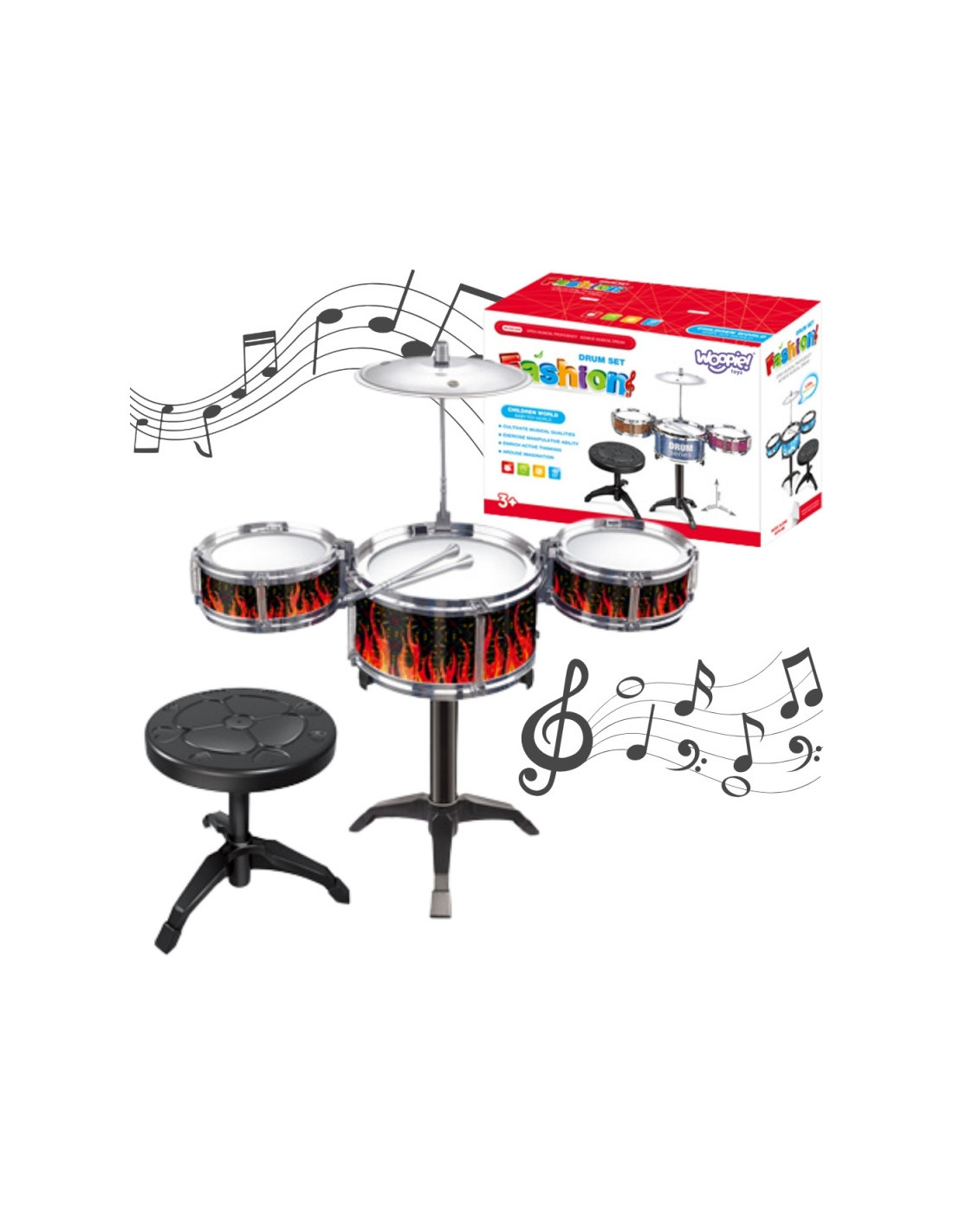 WOOPIE Образовательная перкуссия для детей: 3 барабана, 1 тарелка + стульчик