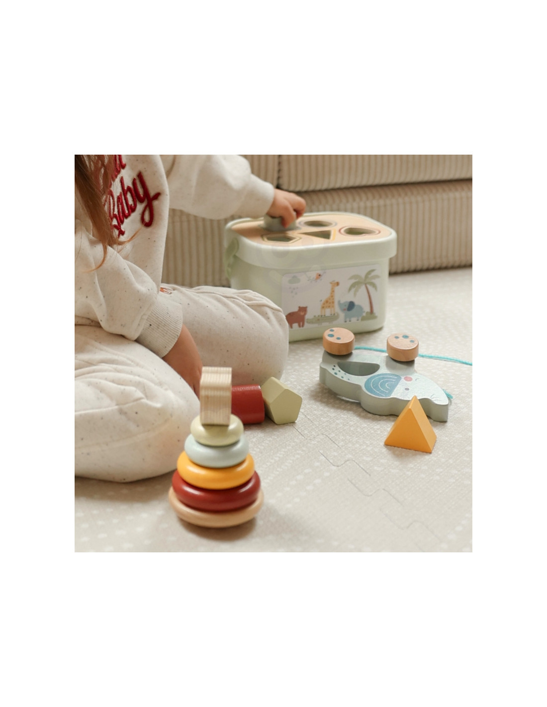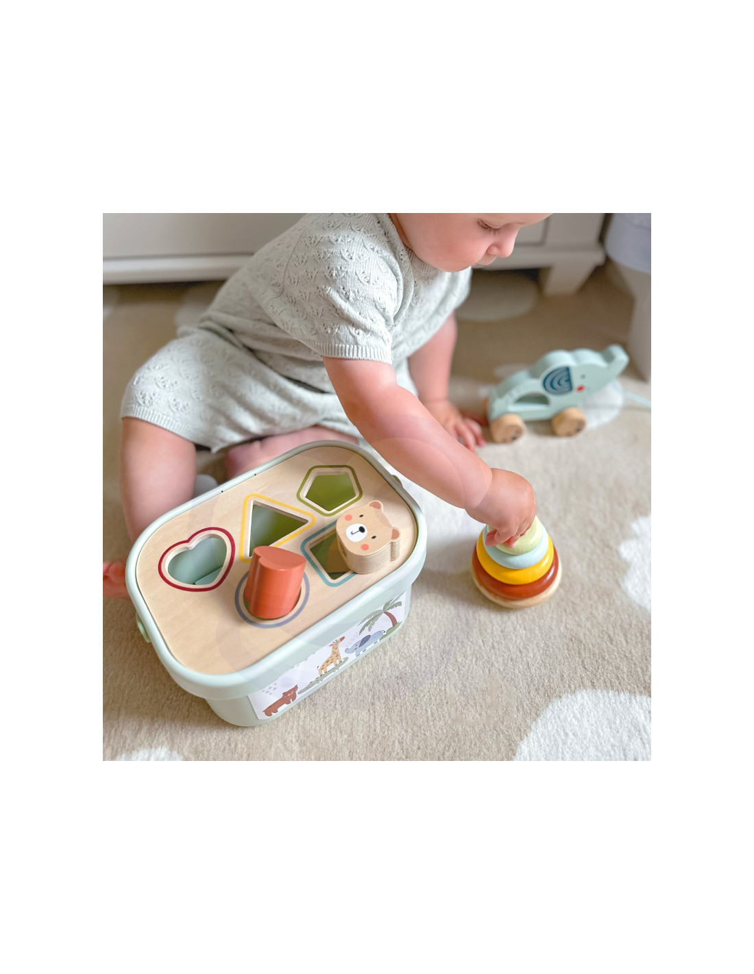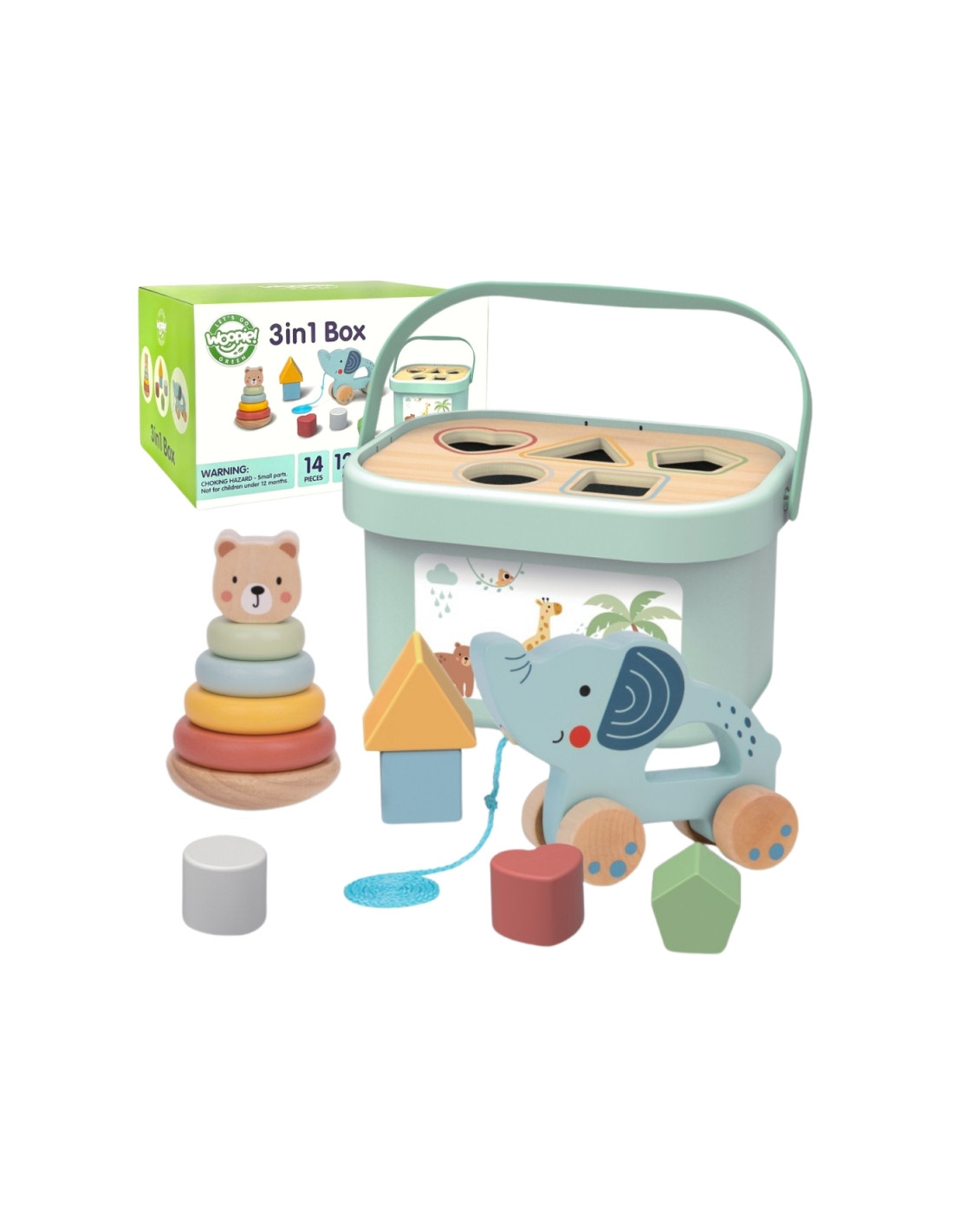 Набор «3 в 1» от WOOPIE GREEN — это классическая и универсальная развивающая игрушка , предлагающая малышам разнообразные возможности для игр и обучения. В набор входят сортировочная коробка с кубиками, плюшевый мишка-пирамидка и фигурка слоника, которую можно толкать и тянуть. Всё изготовлено из безопасных материалов и удобно для маленьких ручек. Игрушки удобно хранить в запирающемся ящике с ручкой для переноски .