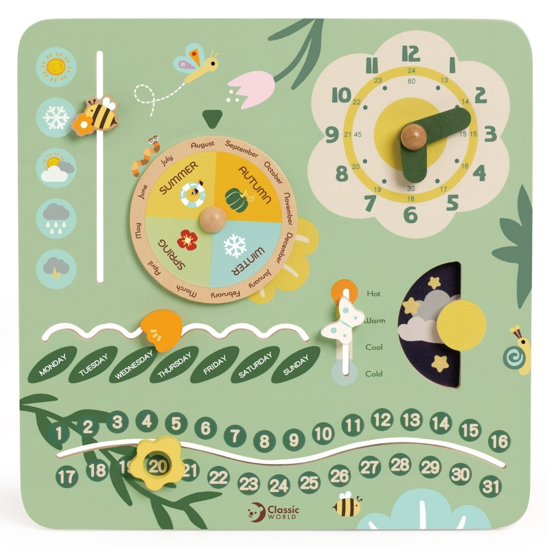 Деревянная манипуляционная доска CLASSIC WORLD «Мой первый календарь» Часы для детей