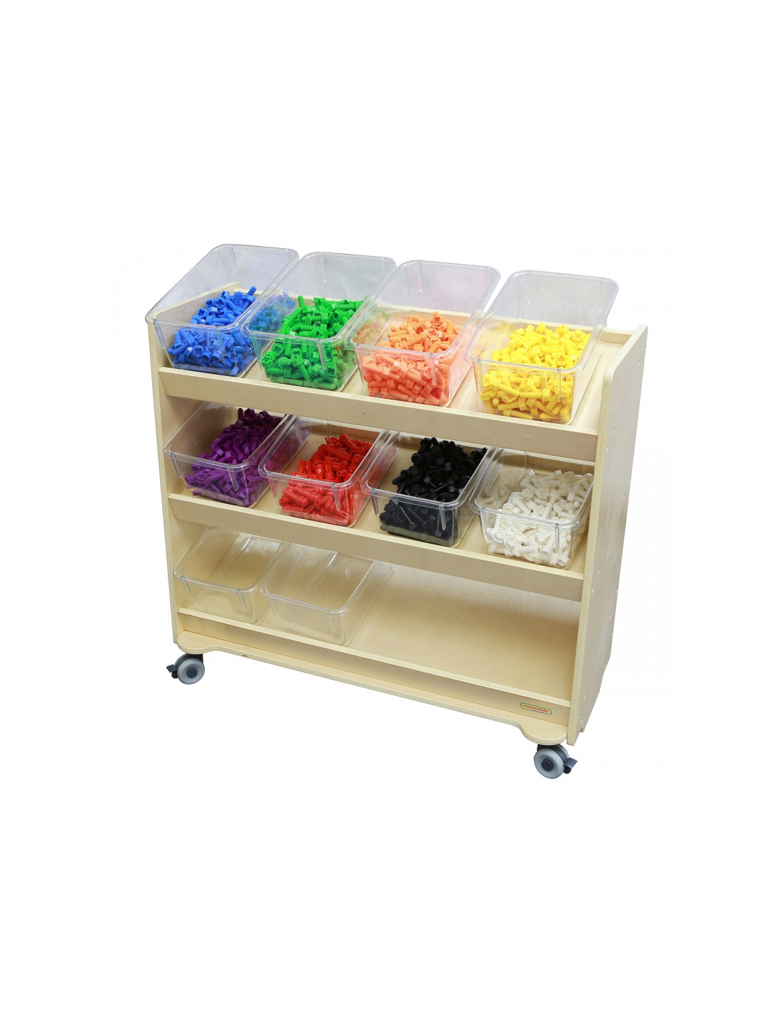 Мобильный стеллаж на колёсах ME29959 — современное и прочное дополнение к любому классу. Разработанный с учётом удобства самых маленьких пользователей, он позволяет легко хранить и организовывать мелкие и средние предметы, такие как винты, гайки и дюбели. Благодаря элегантному дизайну и функциональности он идеально дополнит любое образовательное пространство, поощряя детей к самостоятельности и творчеству во время уроков.