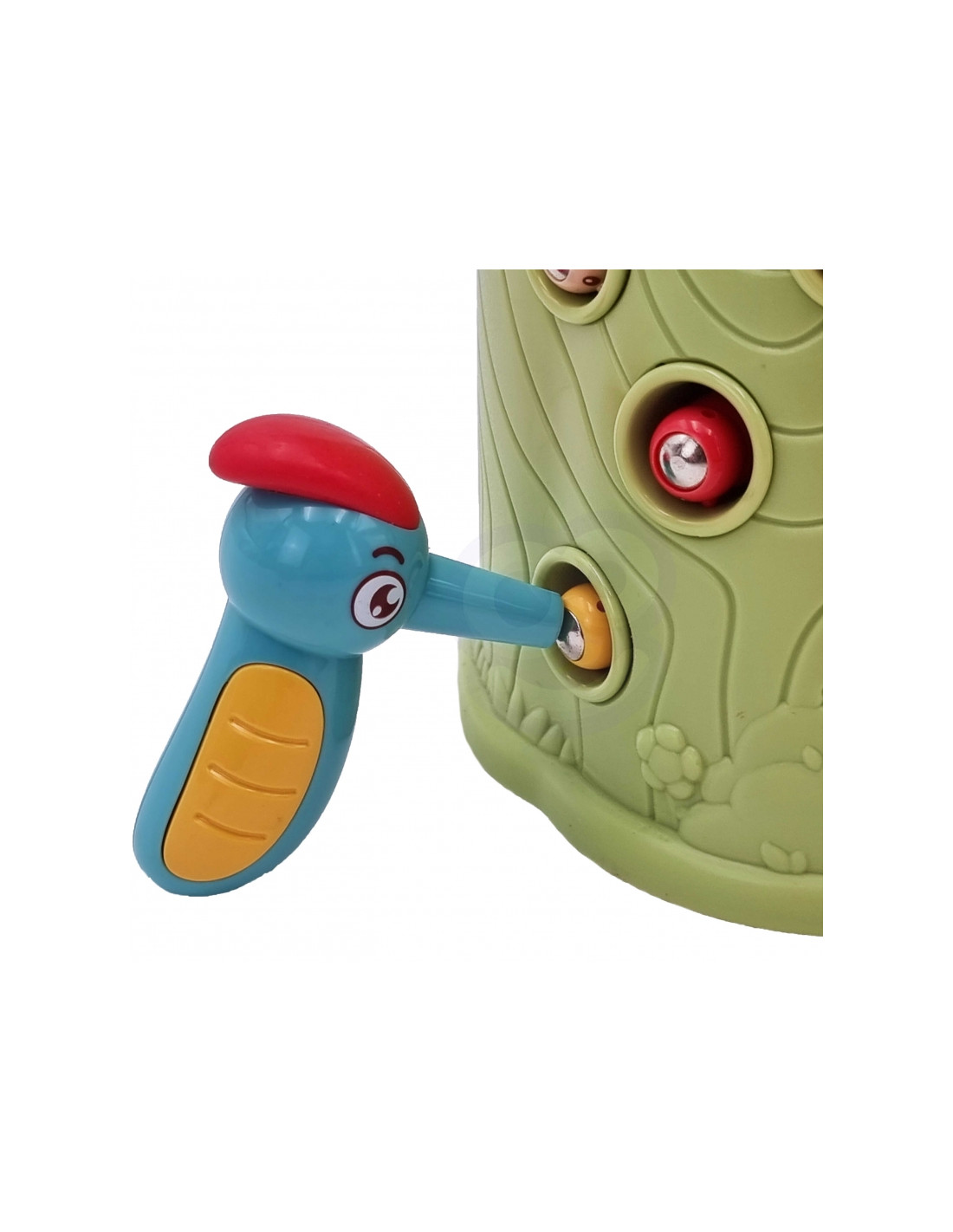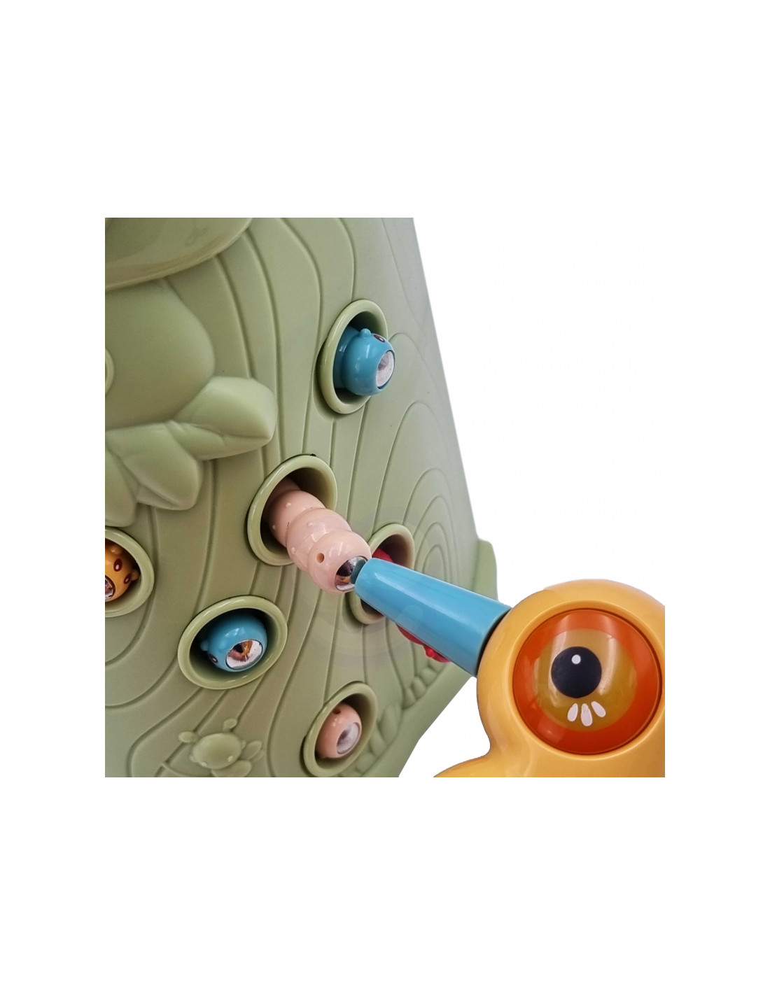 Игра на ловкость WOOPIE « Поймай жука» — отличный способ провести время с ребенком. Простые правила и интуитивно понятное управление делают ее доступной практически любому . В игре нужно ловить жуков, спрятанных в дуплах дерева, с помощью дятла с магнитным наконечником, а затем возвращать их в клюв птицы . Помимо двух дятлов для кормления птенца и бревна с птенцом, в набор входит девять жуков. У большего дятла есть дополнительные функции : он светится, двигает клювом, издает звуки и мелодию. Просто нажмите на стержень, и глаз дятла загорится, играя живую мелодию. Птица также может опускать клюв, и ее глаз загорится, издавая щебечущий звук . С набором могут играть двое детей одновременно . Игра обучает через игру и помогает развивать мелкую моторику (движения) и зрительные навыки , среди прочего. Игрушка представляет собой довольно сложную задачу для малыша, она требует концентрации и ловкости рук, но в то же время будет чрезвычайно интересна ребенку.