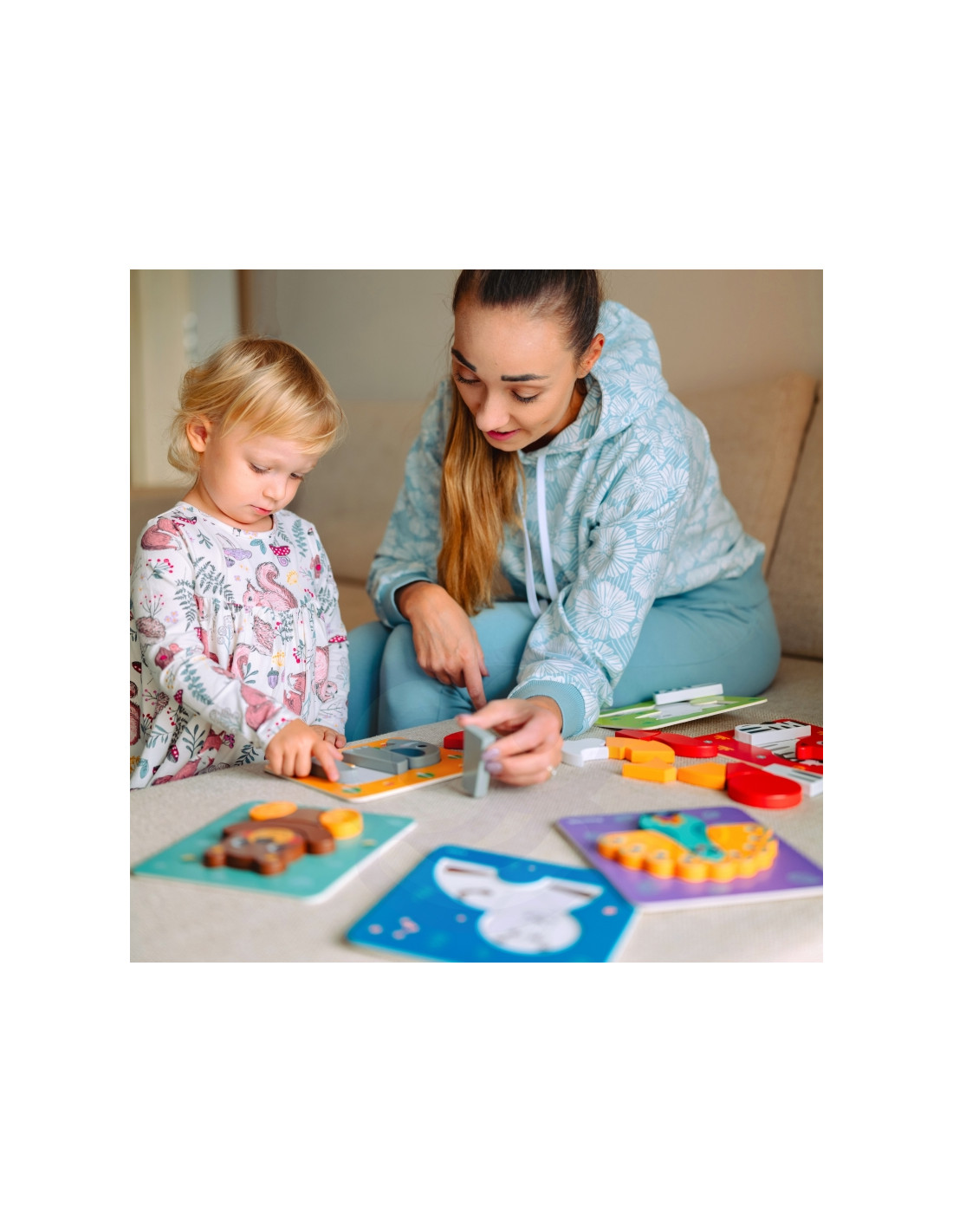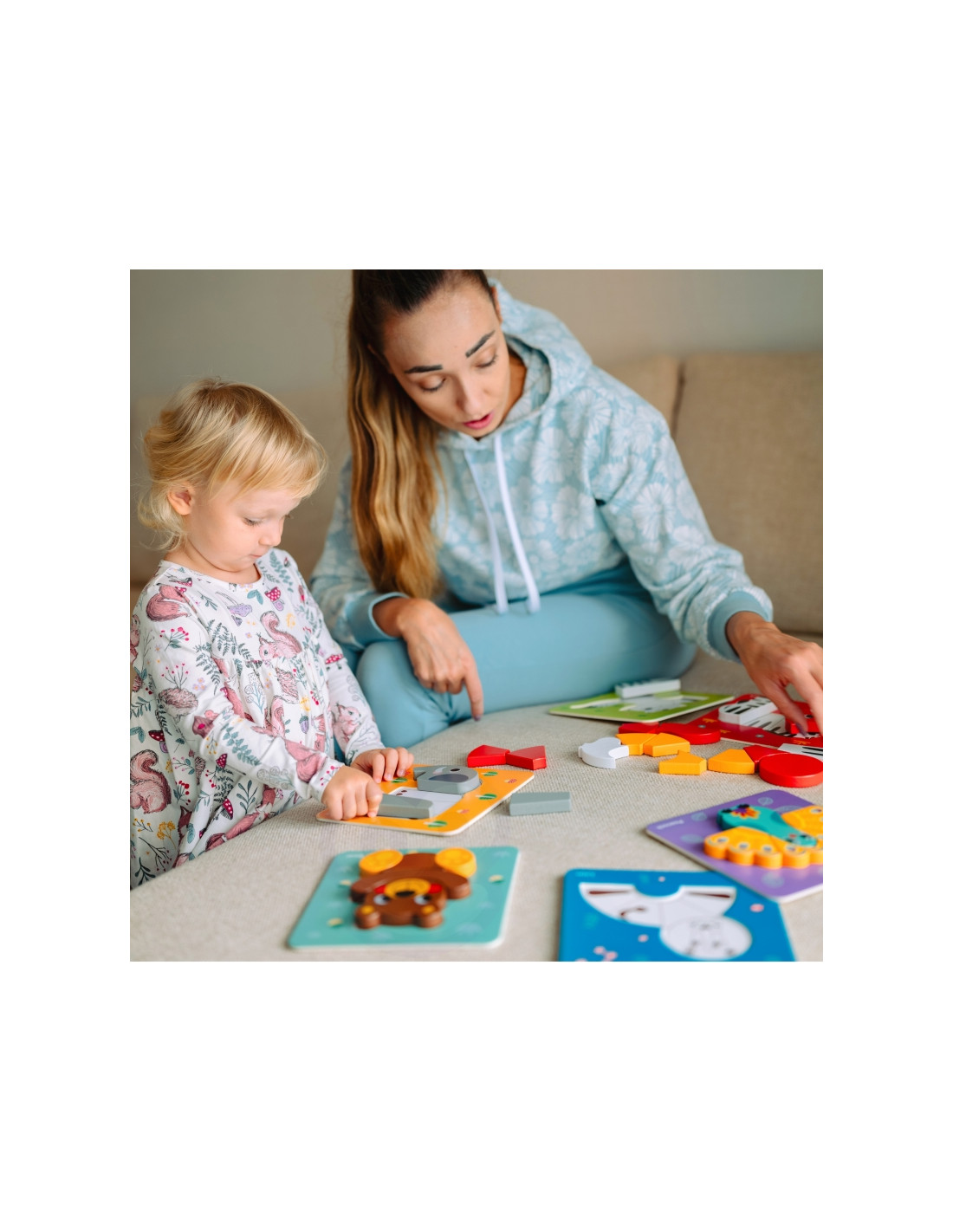 Деревянный пазл «Животные Woopie состоит из 34 деталей, включая 6 прочных красочных карточек. Задача ребёнка — сопоставлять крупные деревянные детали, расставляя их по шаблону, чтобы собрать красочный пазл. Специально разработанные пазы эффективно предотвращают скольжение деревянных деталей, помогая малышам развивать мелкую моторику.