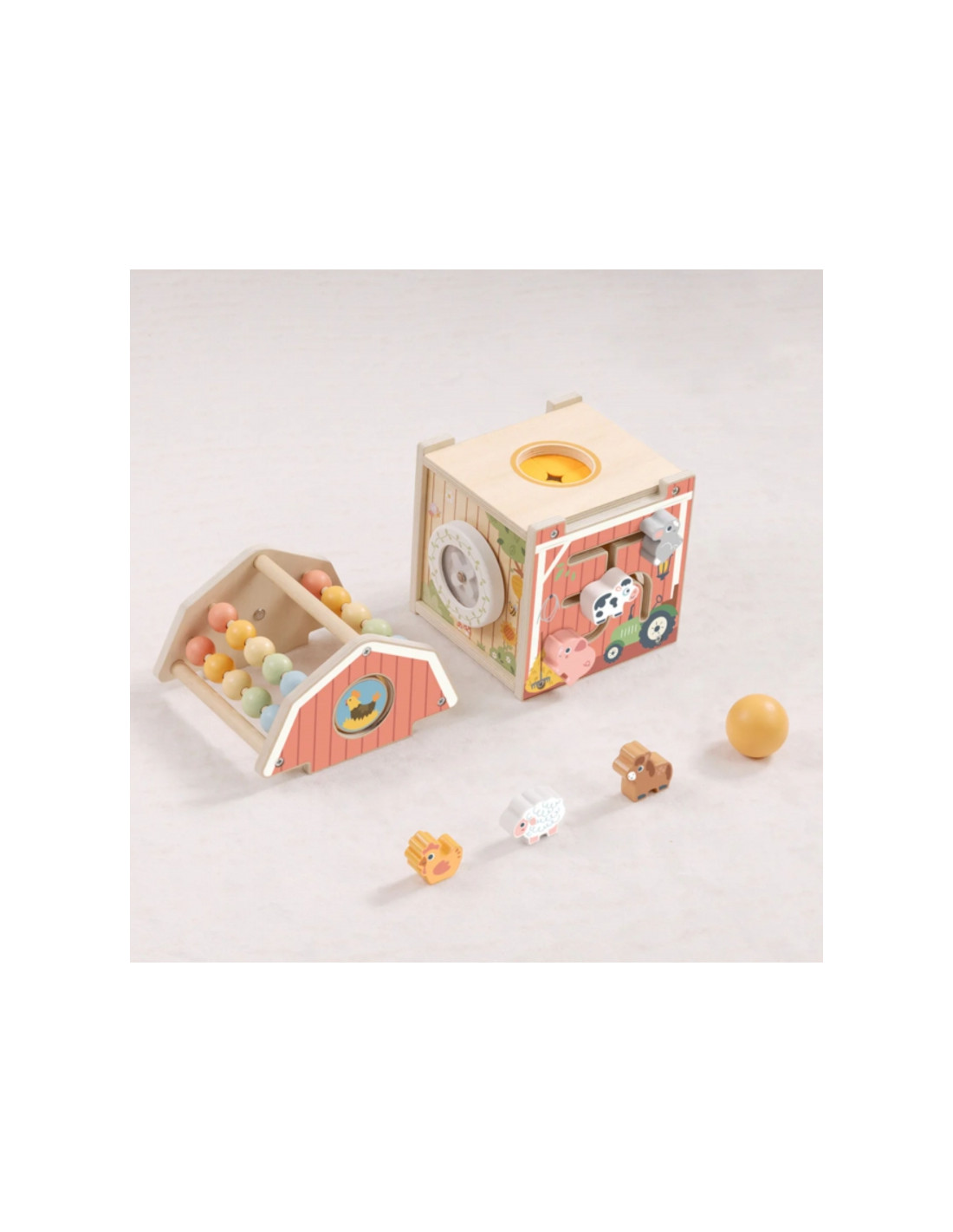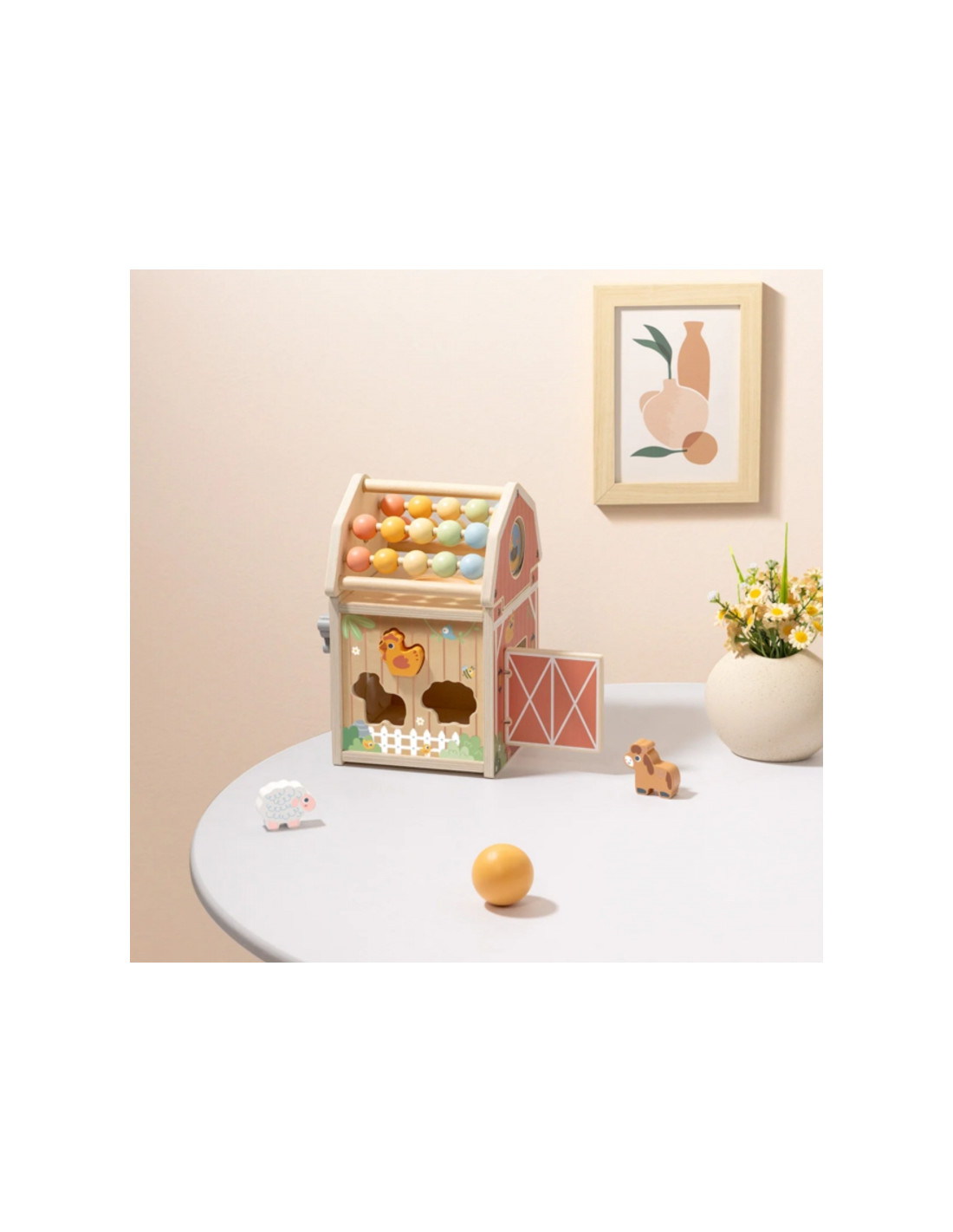 Деревянный амбар для игрушек от Tooky Toy — это сортер в форме амбара, полный сюрпризов! Этот очаровательный сортер в форме амбара идеально подходит для самых маленьких исследователей. Каждая грань игрушки с открывающимися дверцами, подвижными деталями, красочными счётами на крыше и очаровательными фигурками животных — это новое приключение, которое увлечет вашего ребёнка и побудит к активной игре. Благодаря продуманной конструкции, сочетающей в себе множество функций, этот деревянный амбар подарит вам много часов увлекательного времяпрепровождения, способствуя многостороннему развитию вашего малыша.