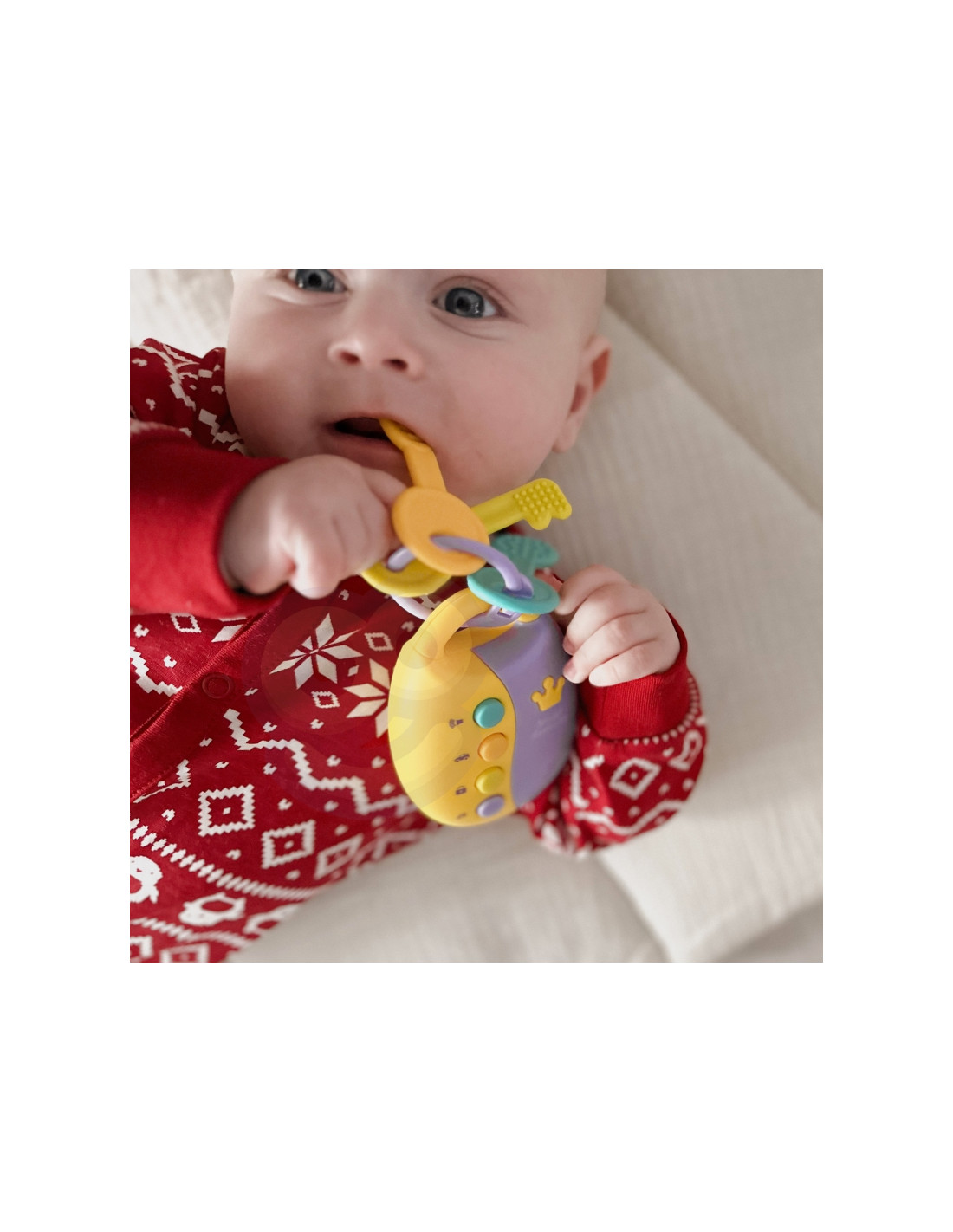Интерактивные ключи Woopie Baby — это многофункциональная игрушка, сочетающая в себе веселье и обучение. Четыре разноцветных ключа активируют звуковые и световые эффекты (имитация открывания двери, гудка, зажигания и звонка), благодаря чему реалистичная игра подарит вашему малышу массу радости и удовольствия. Эти уникальные ключи также выполняют функцию прорезывателя зубов, смягчая боль при прорезывании зубов и способствуя сенсорному развитию ребенка. Кроме того, вашему малышу доступны 10 мелодий, которые развивают чувство ритма и музыкальность.