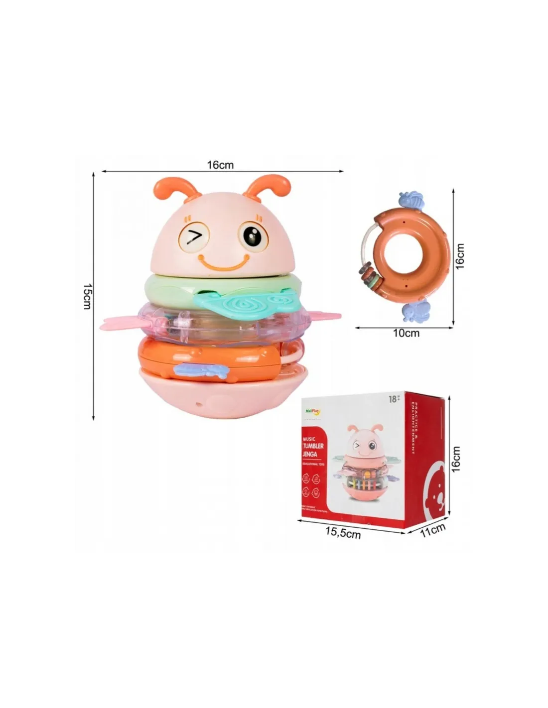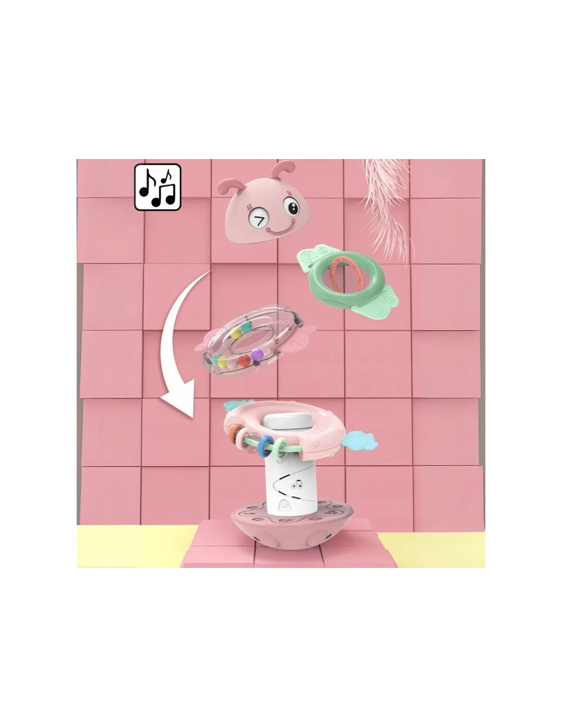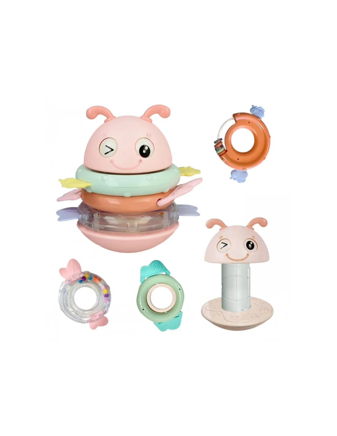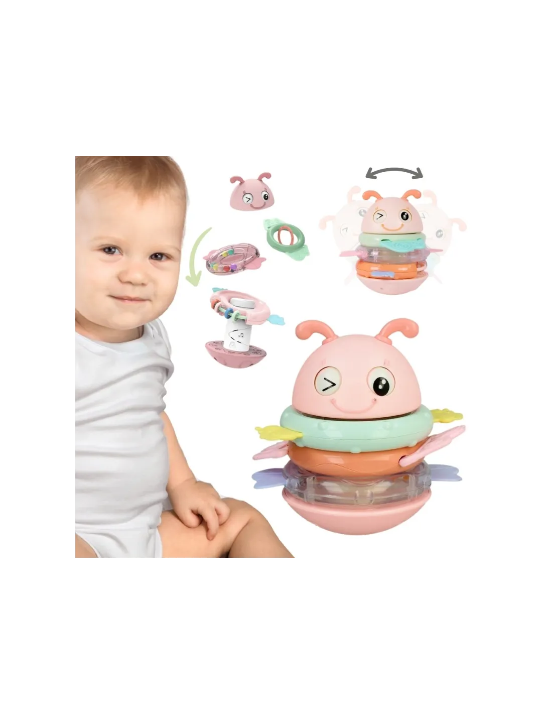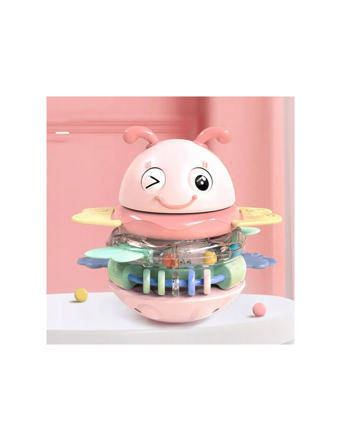 Сенсорная игрушка-погремушка-прорезыватель WOOPIE Baby Wanka 2 в 1, розовая