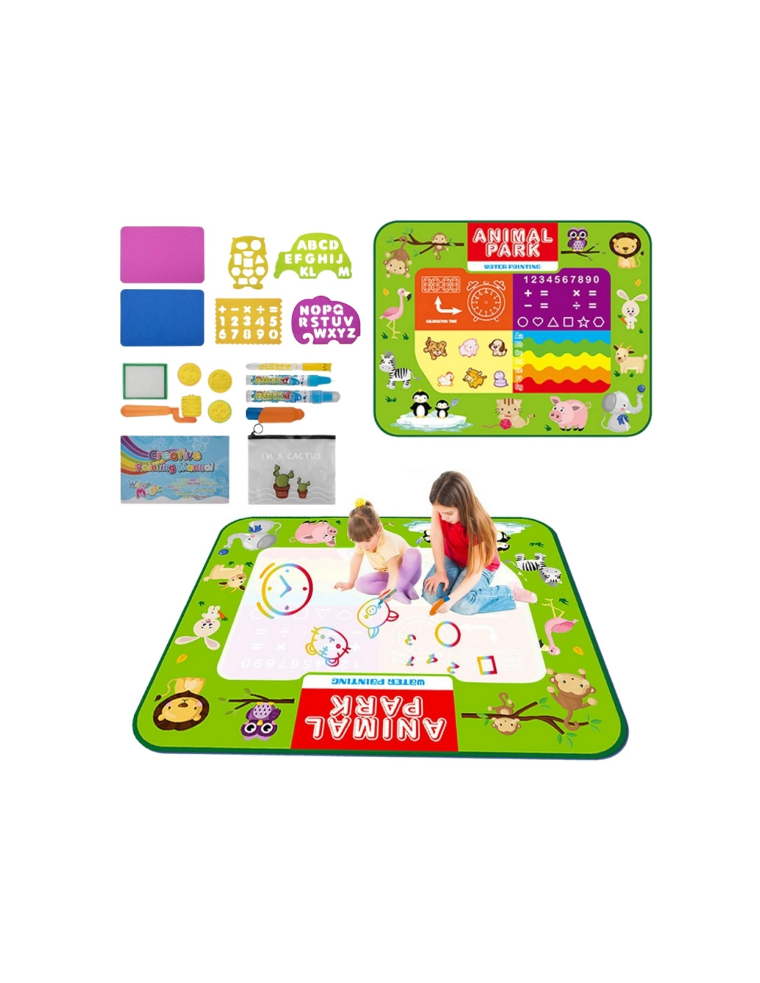 Это уникальный обучающий водный коврик Animal Park от Woopie — красочное, безопасное и увлекательное пространство, созданное для самых маленьких исследователей! Этот набор помогает детям учиться через игру : они откроют для себя алфавит, цифры, фигуры, аналоговые часы и животных. В более позднем возрасте они также могут учиться на английском языке. Входящие в комплект аксессуары, такие как водные маркеры, валик, штампы и трафареты, позволяют рисовать без пятен — все, что вам нужно, — это вода! Изделие многоразовое — после высыхания коврик готов к дальнейшим творческим занятиям всего за несколько минут. Идеально подходит для самостоятельной игры или с братьями и сестрами, друзьями или родителями. Коврик развивает мелкую моторику и координацию рук и глаз и является отличным способом обучения через игру. Его можно использовать как дома, так и в саду.