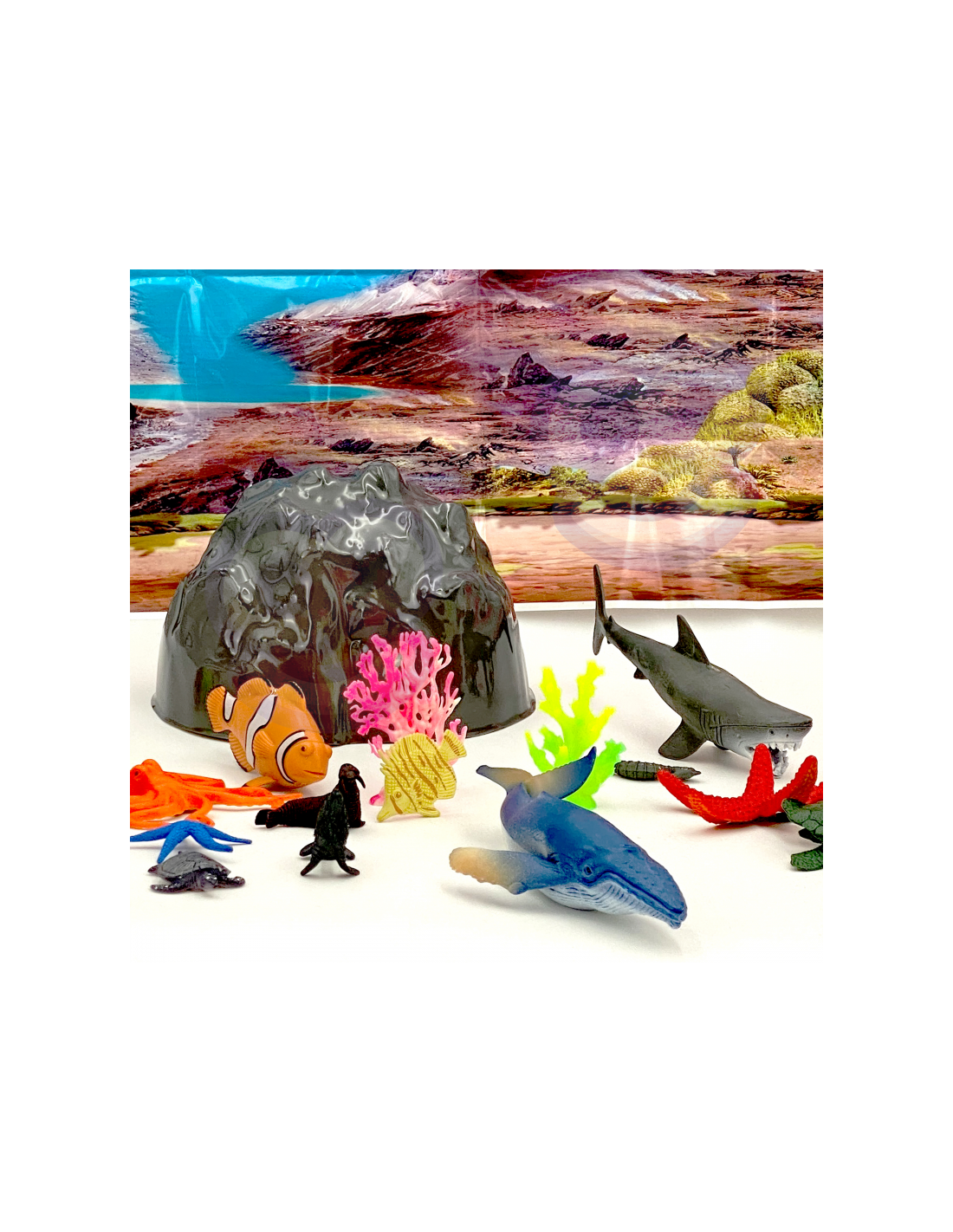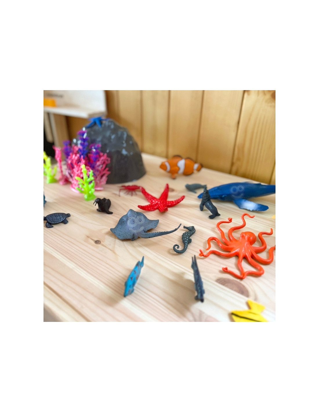 Набор фигурок WOOPIE — идеальный набор для любого любителя морских животных. В набор входят 21 морское животное, 10 растений, коврик и камень. Эти реалистичные фигурки дополнят коллекцию вашего маленького коллекционера, послужат образовательным целям и подарят удовольствие, которое поможет развить воображение и творческие способности вашего ребенка.