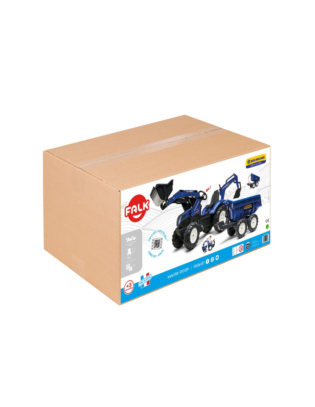 FALK Traktorek New Holland na Pedały Niebieski z Przyczepką od 3 Lat