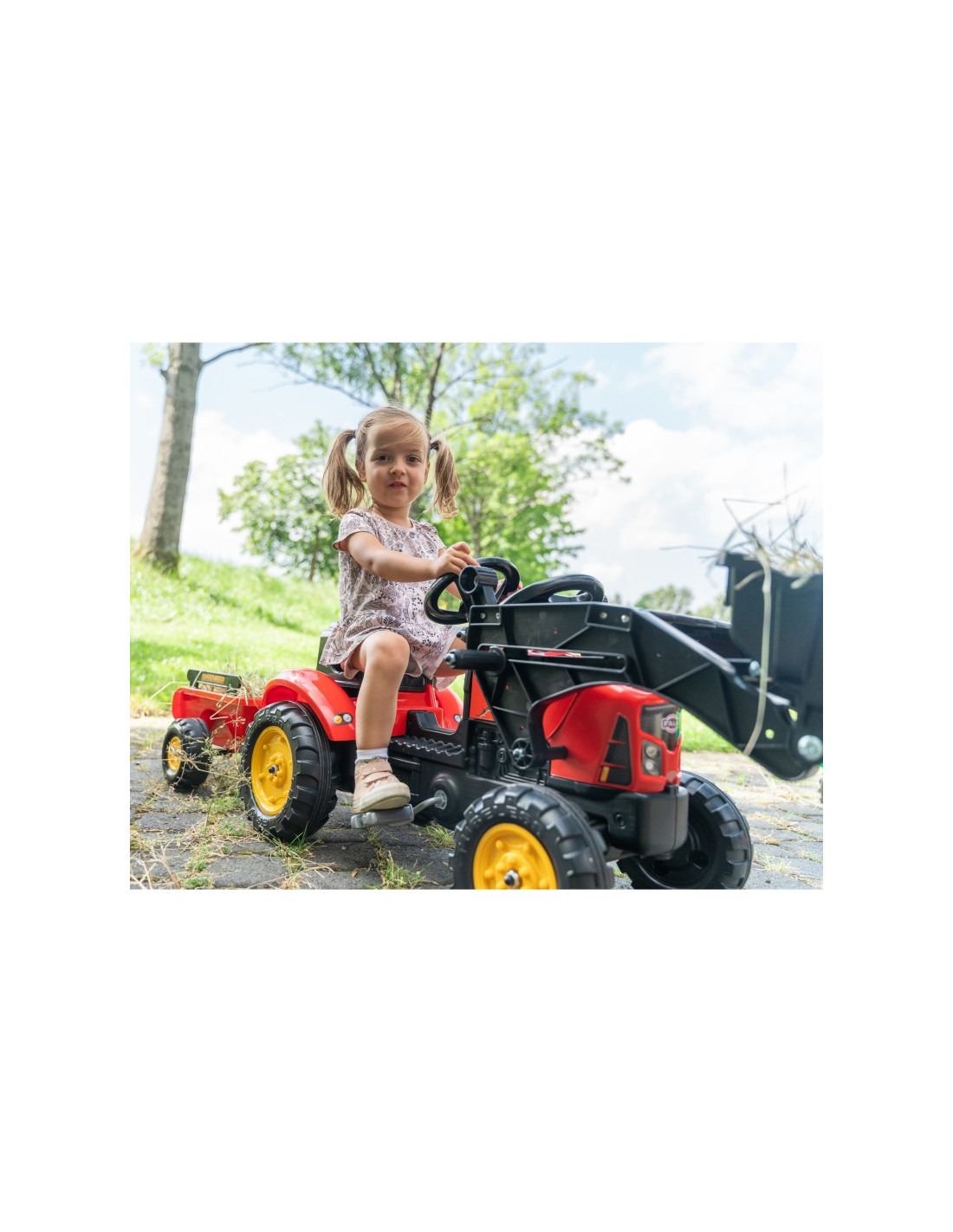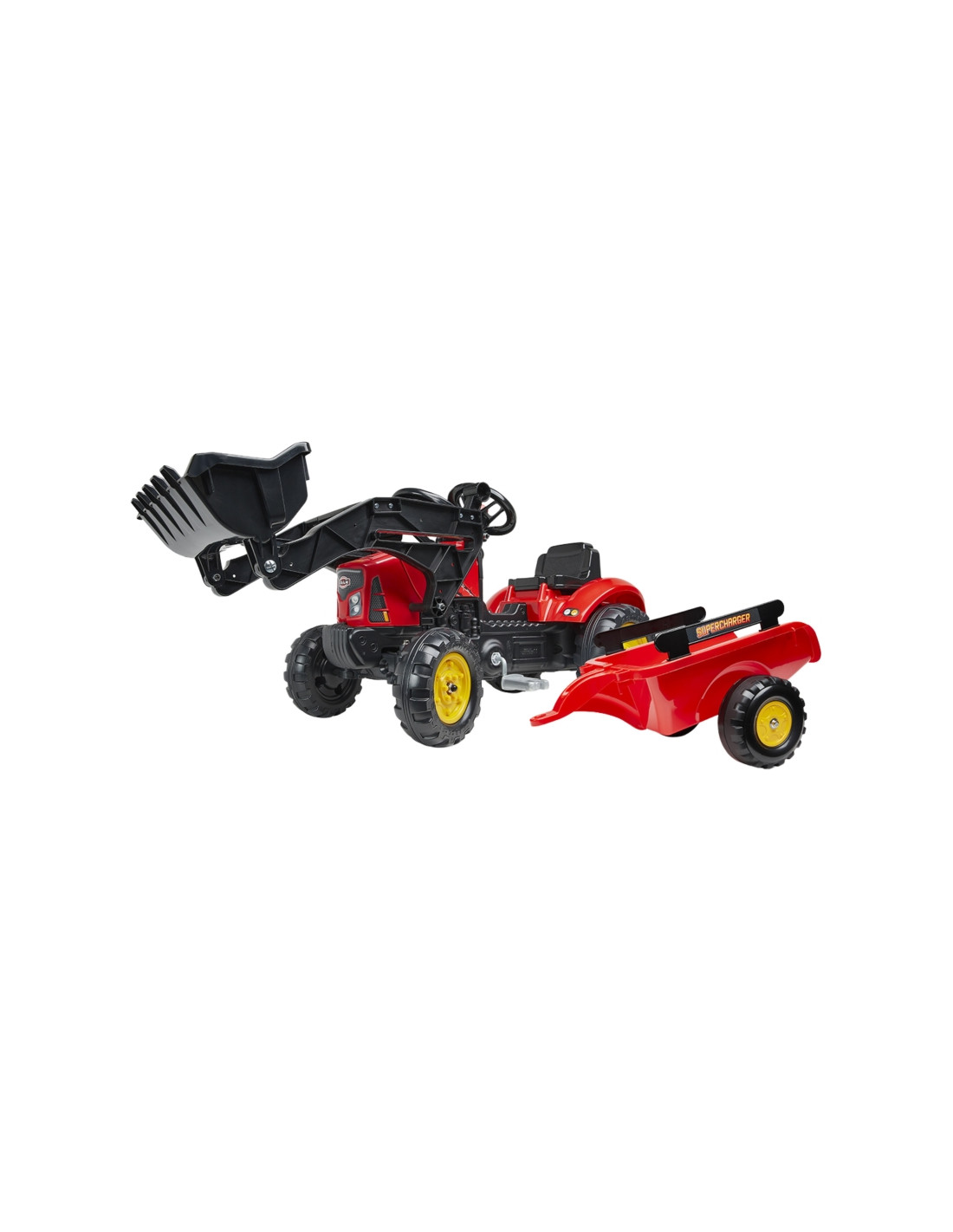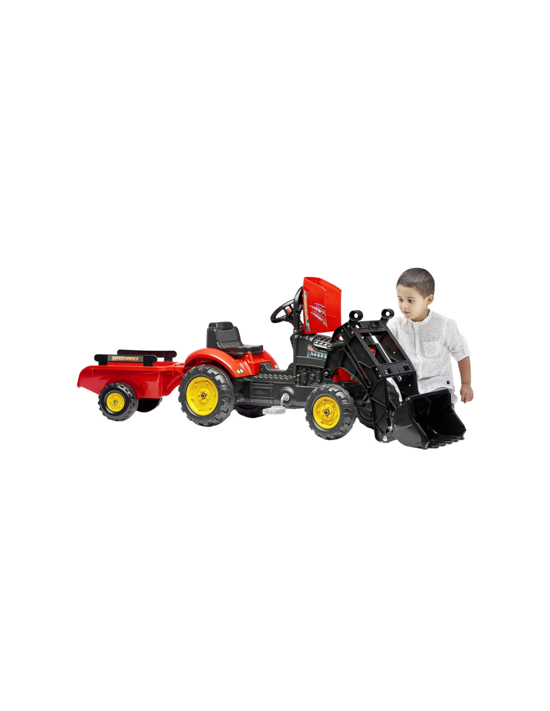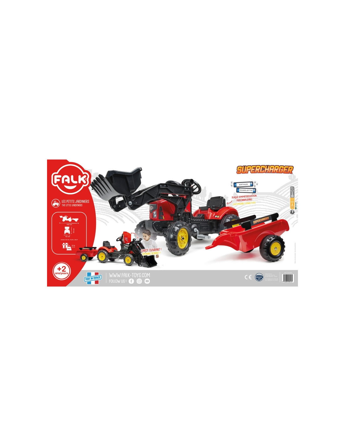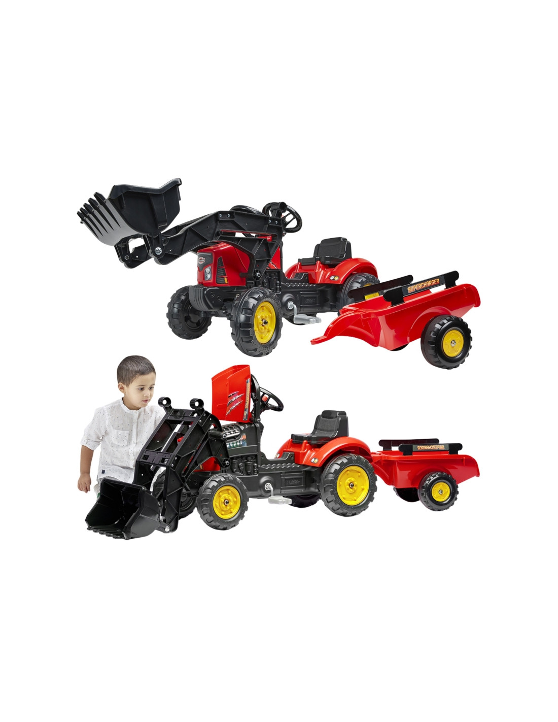 Трактор FALK Supercharger, красный, с открывающимся капотом, прицепом и ковшом