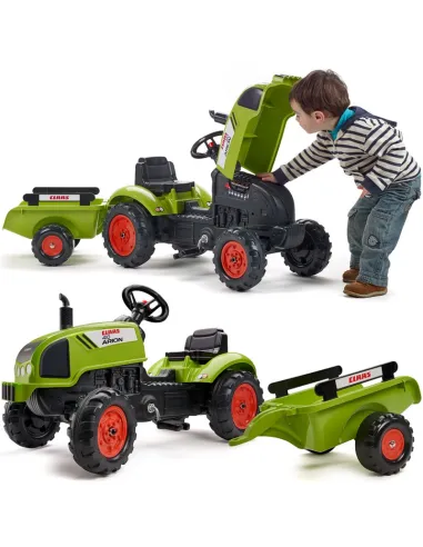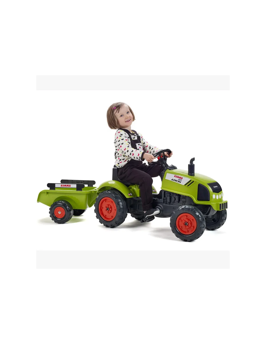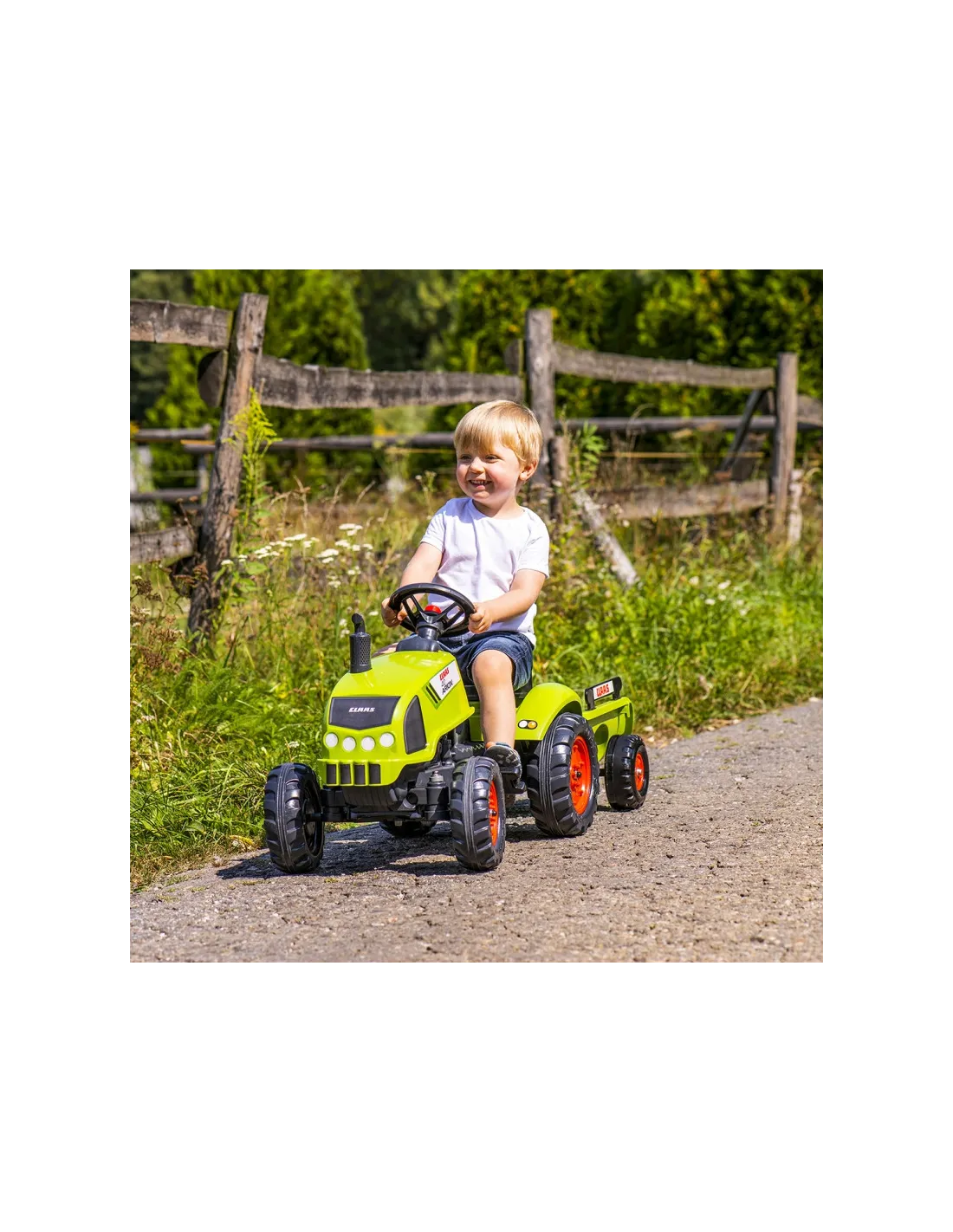 Трактор FALK Claas зеленый с педалями, сигналом и прицепом