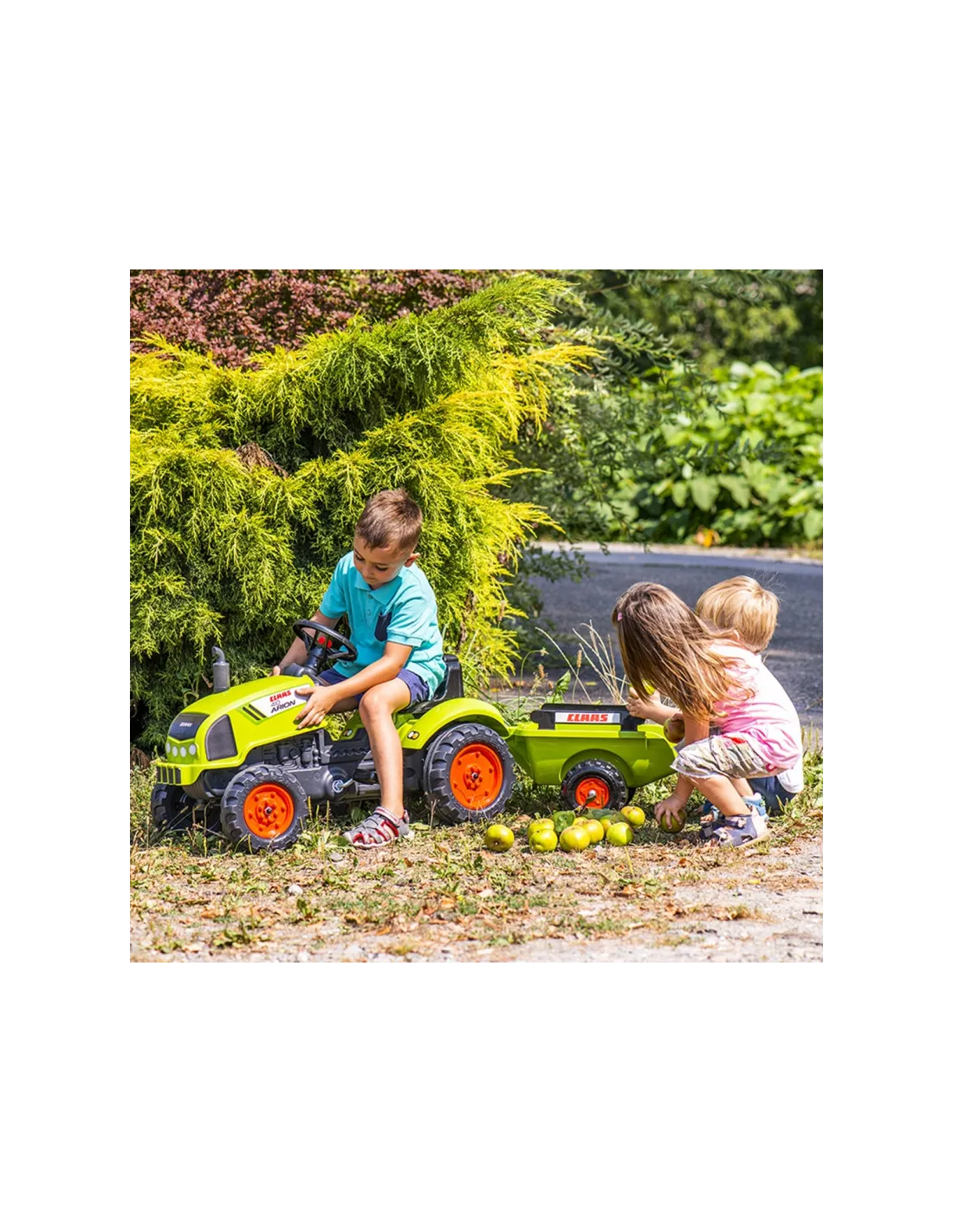 Педальный трактор FALK CLAAS с прицепом – мечта многих юных трактористов. Тщательно продуманная конструкция с вниманием к деталям! Ни один фермер не будет разочарован. Изготовленный из высококачественного пластика, этот трактор подходит для детей от 2 лет. Он оснащен съемным прицепом с панелями и рулем со звуковым сигналом. Колеса трактора изготовлены из высококачественного пластика.