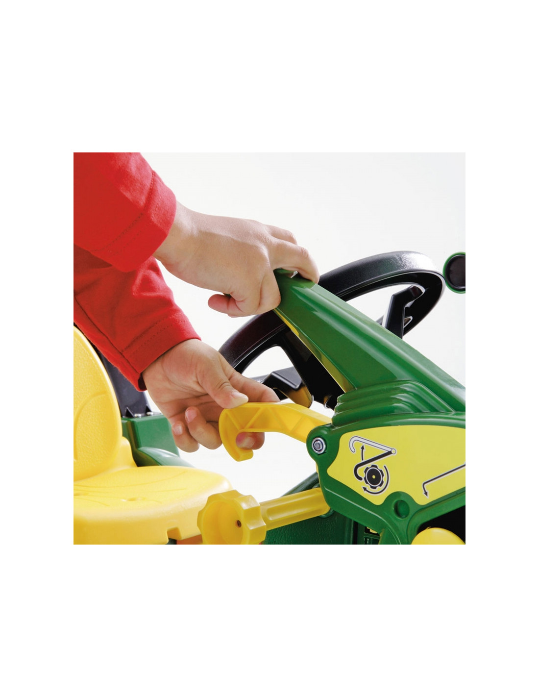 Педальный трактор Rolly Toys rollyFarmtrac John Deere 7930 не только прочный, но и легко моется, что делает его идеальным компаньоном для игр на улице и дома . Трактор также оснащен ручным тормозом, что позволяет детям почувствовать себя настоящими водителями. Возможность самостоятельного торможения добавляет реалистичности и азарта игре, одновременно обучая детей основным правилам дорожного движения. Кроме того, трактор можно оснастить съемным прицепом , что открывает еще больше возможностей для творческой игры. Дети могут перевозить любимые игрушки и помогать в садоводстве, развивая воображение и мелкую моторику . Не говоря уже о подвижном съемном ковше экскаватора – еще одной особенности, которая добавляет трактору функциональности и привлекательности. Это позволяет детям играть в маленьких строителей, насыпая песок, землю или другие материалы, предоставляя бесконечные возможности для игр. Главной особенностью этого трактора является система переключения передач , которая работает по принципу велосипедного переключателя, предлагая две скорости и функцию свободного хода. Это обеспечивает плавный ход трактора и позволяет юным водителям адаптировать его к их навыкам, а цепной привод обеспечивает безопасное и легкое управление даже для самых маленьких. Вся механическая система тщательно закрыта, что обеспечивает безопасность доступа детей и полную безопасность во время игры .