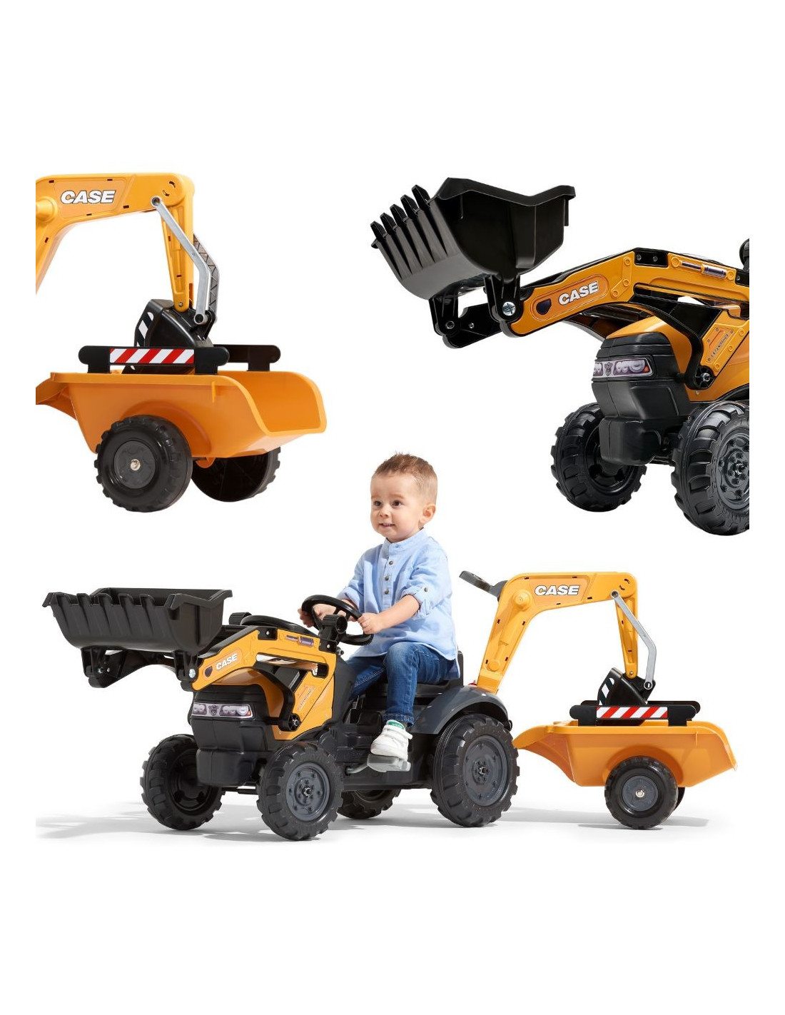 Для юных инженеров и любителей крупной строительной техники компанияFALKCASE Construction создала уникальное транспортное средство, лицензированное CASE Construction. Этот впечатляющий трактор с педальным приводом является точной копией настоящего трактора и разработан специально для детей в возрасте от 2 до 5 лет. Модель, полностью произведенная во Франции, сочетает в себе прочную конструкцию и экологичность, поскольку входит в линейку Eco Design — она изготовлена как минимум на 30 % из переработанного пластика. Транспортное средство предлагает бесконечные возможности для игр благодаря своему обширному оборудованию. Он оснащен полностью подвижным передним ковшом для погрузки песка или грунта, задним экскаватором, управляемым с вращающегося сиденья, и съемным прицепом для транспортировки сокровищ со строительной площадки. Стабильная конструкция и широкие колеса обеспечивают безопасность, а руль с клаксоном добавляет реалистичности каждому игровому опыту. Это идеальный инструмент, чтобы помочь родителям в садоводстве и развить у детей страсть к DIY.