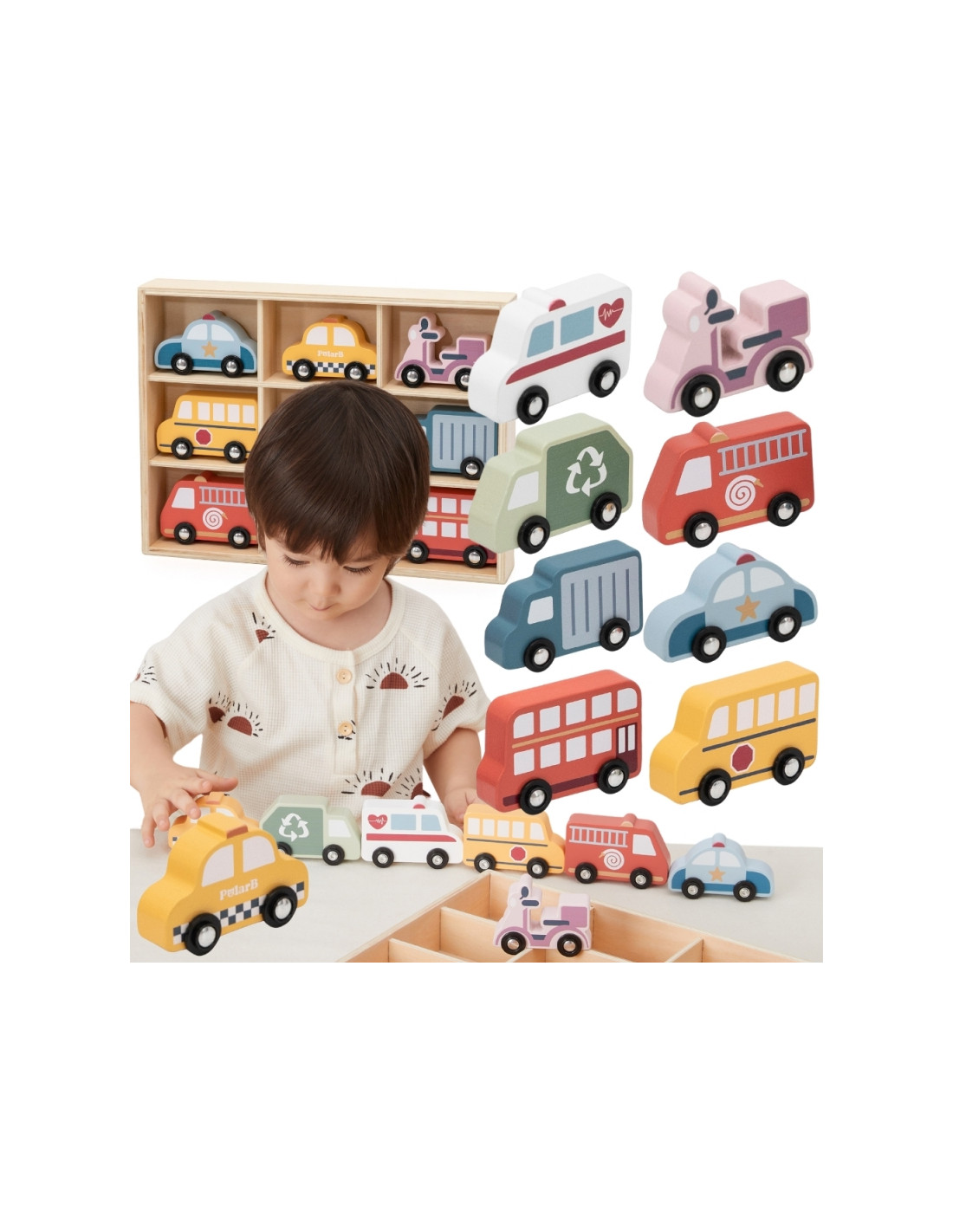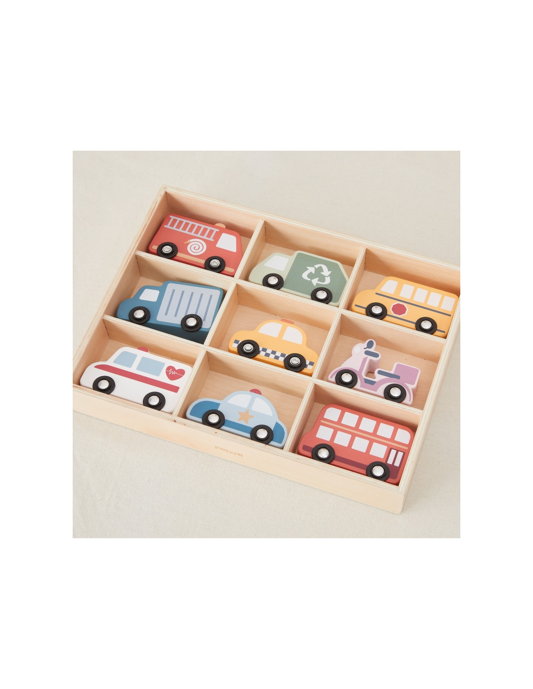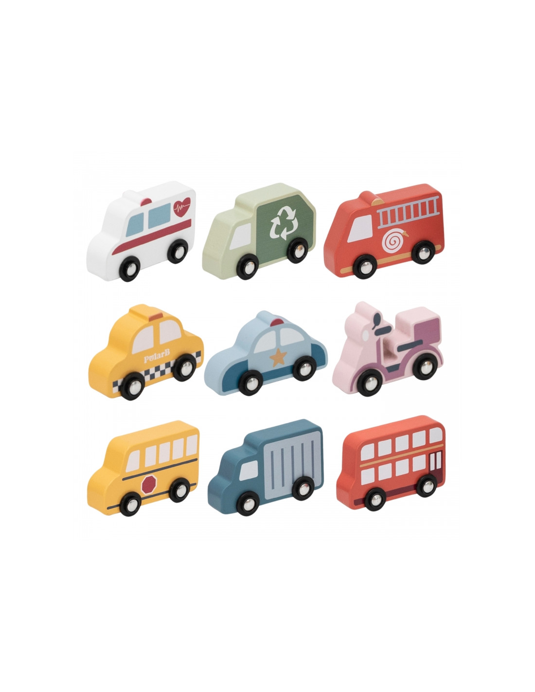 VIGA Drewniany Zestaw Kolorowych Pojazdów Miejskich 9szt.