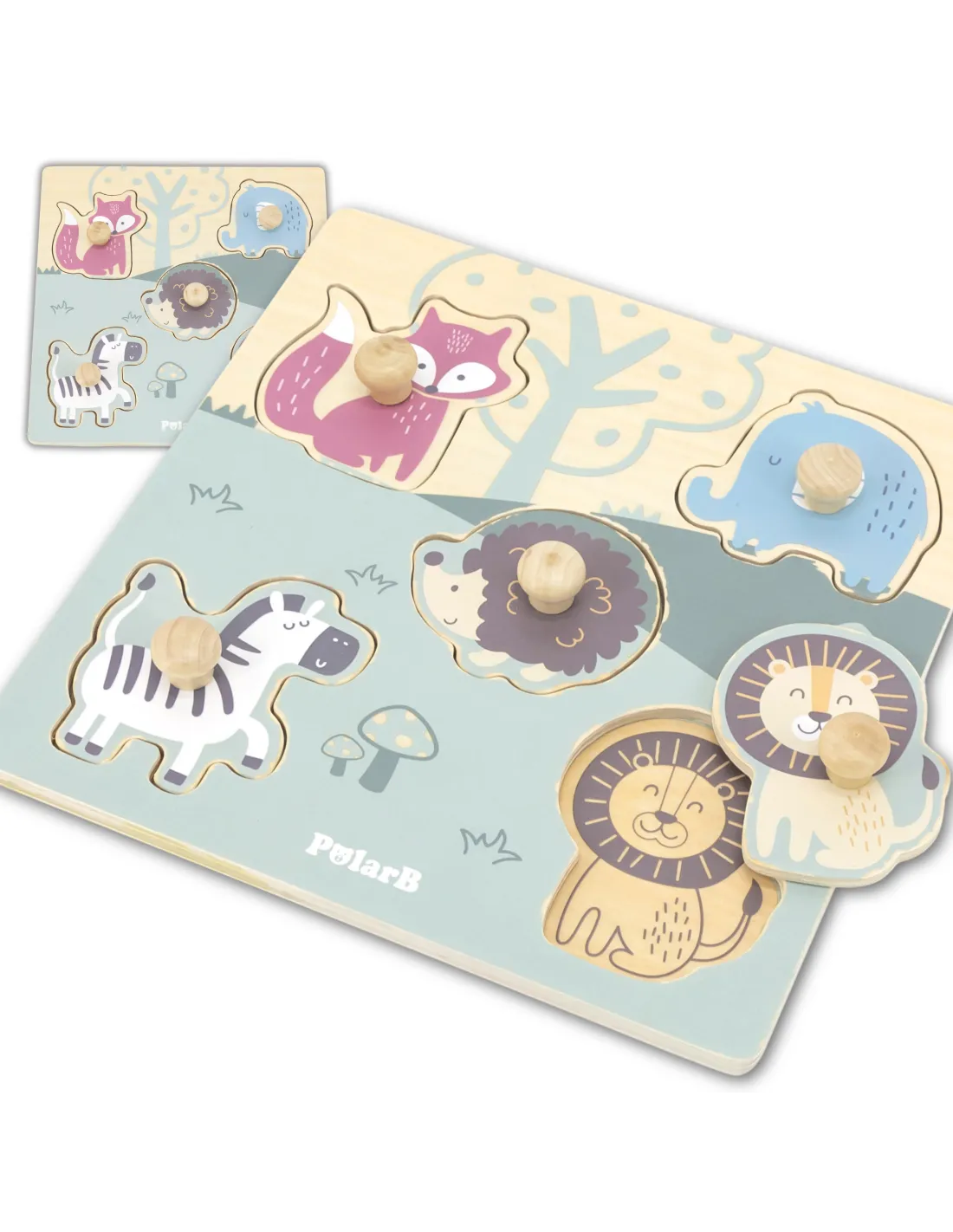 VIGA PolarB Wooden Puzzle Animals with Pins