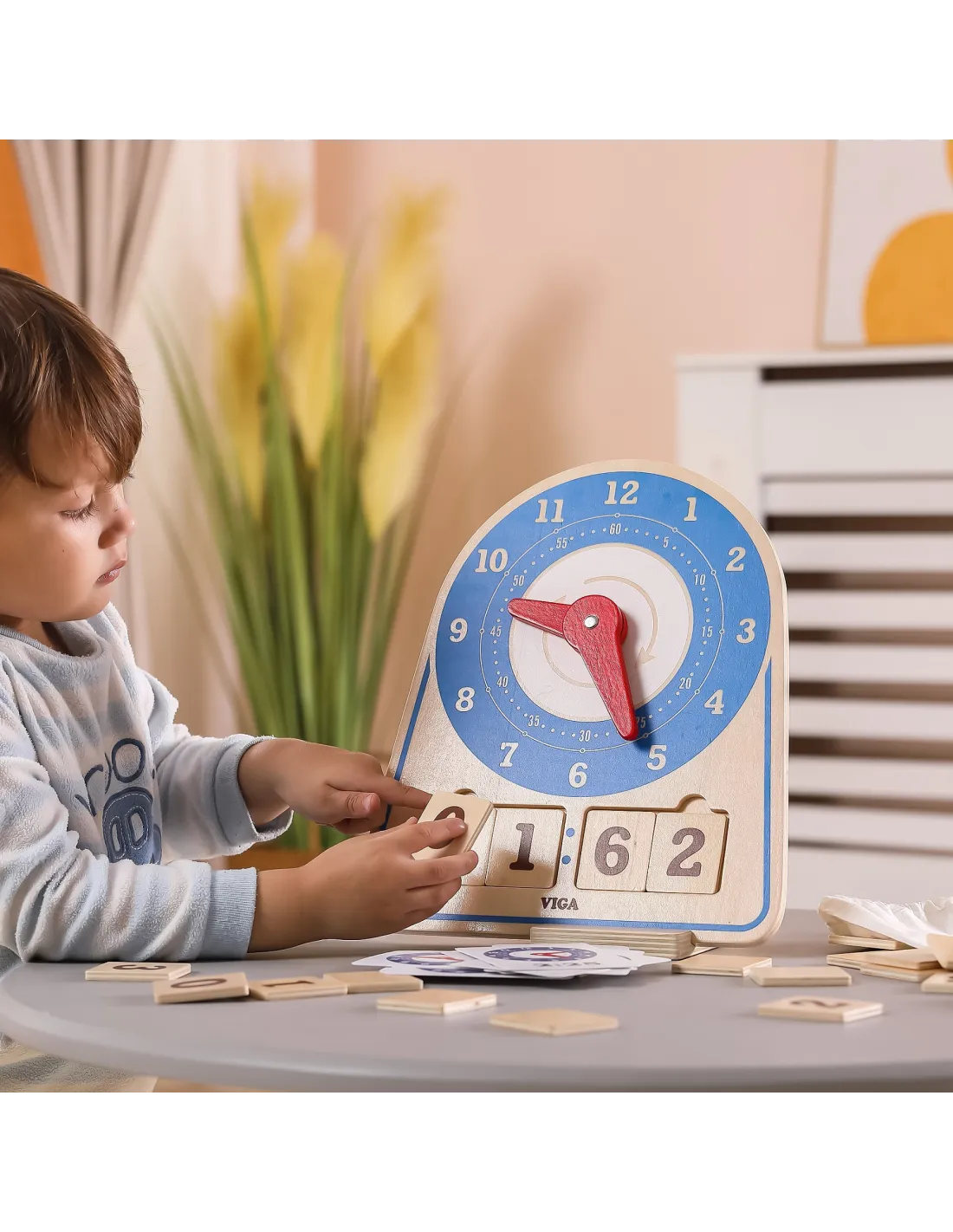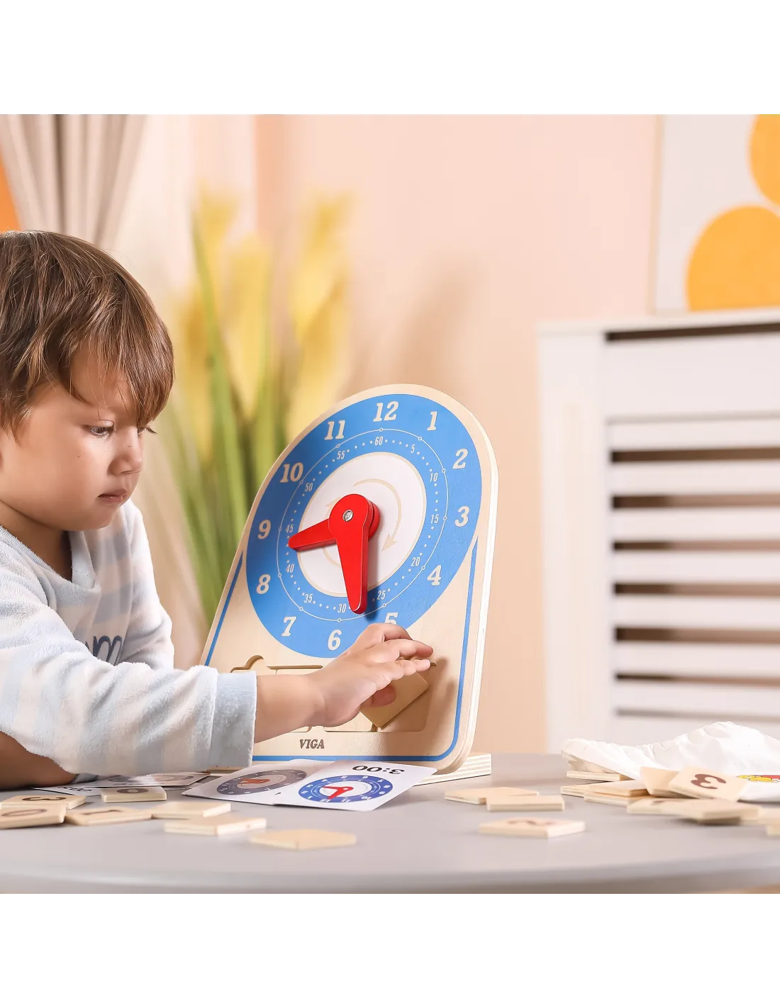 VIGA Wooden Clock Learning Time Clock Montessori
