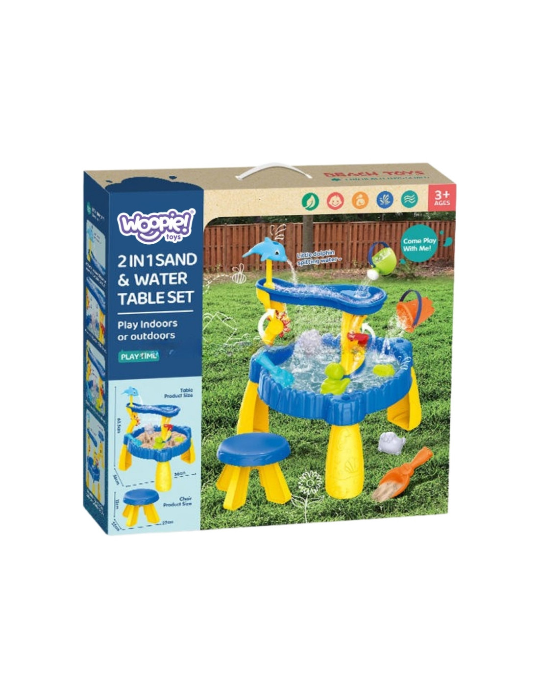 WOOPIE Stolik Wodny XL z Krzesełkiem 2w1 Piaskownica Delfinek 12el.