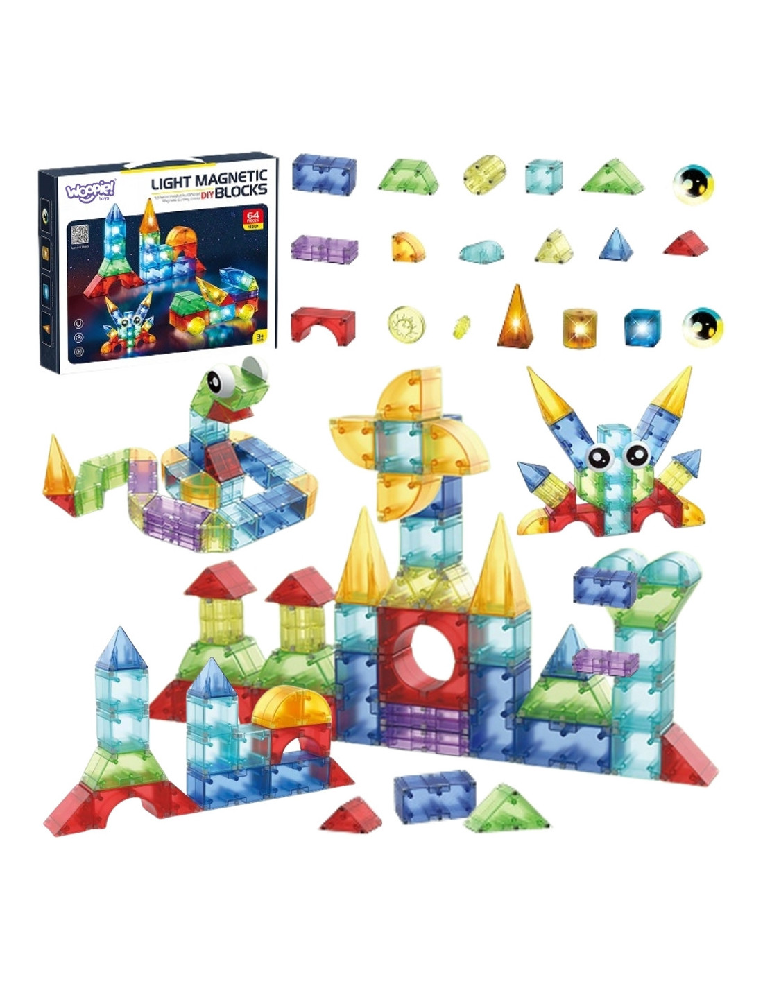 WOOPIE Magnetic Construction Blocks 3D Cubes Educational Set 63 pcs.