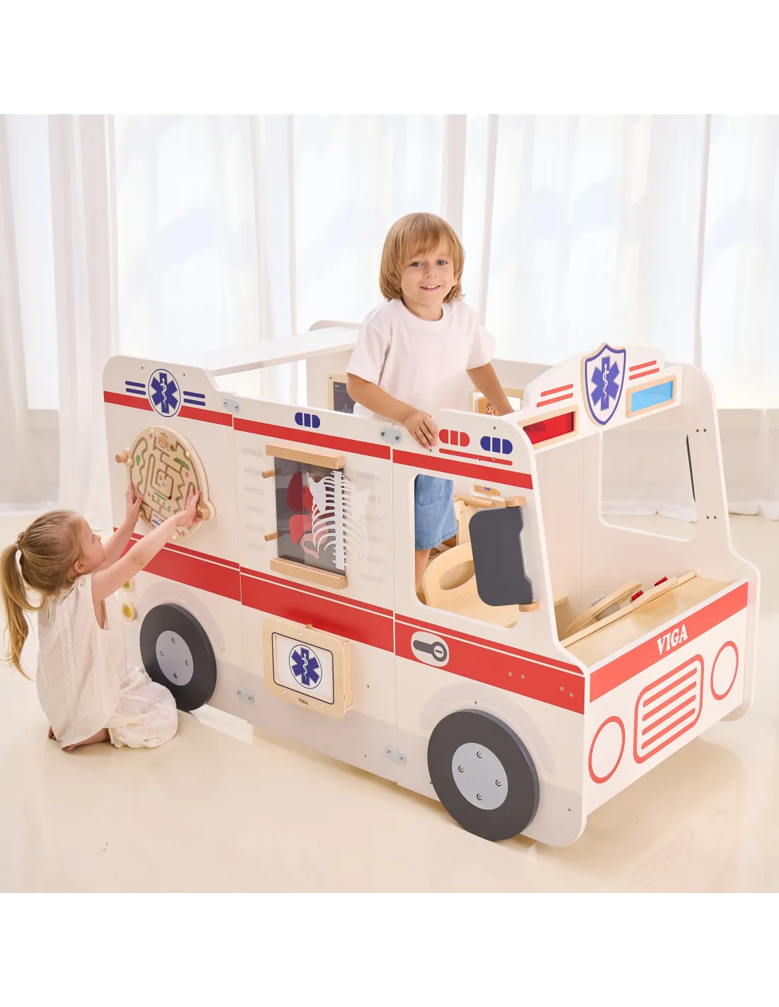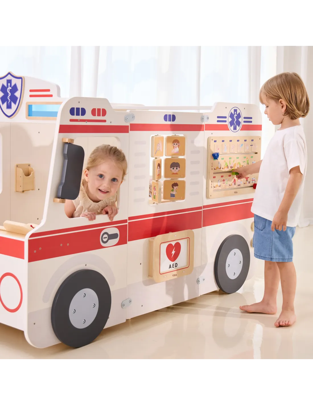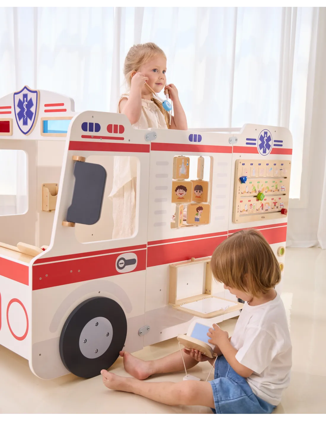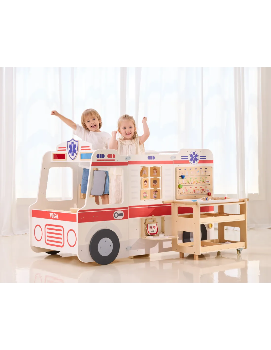 VIGA Large Wooden Ambulance Set Ambulance for Small Rescuers Accessories 25 pcs.