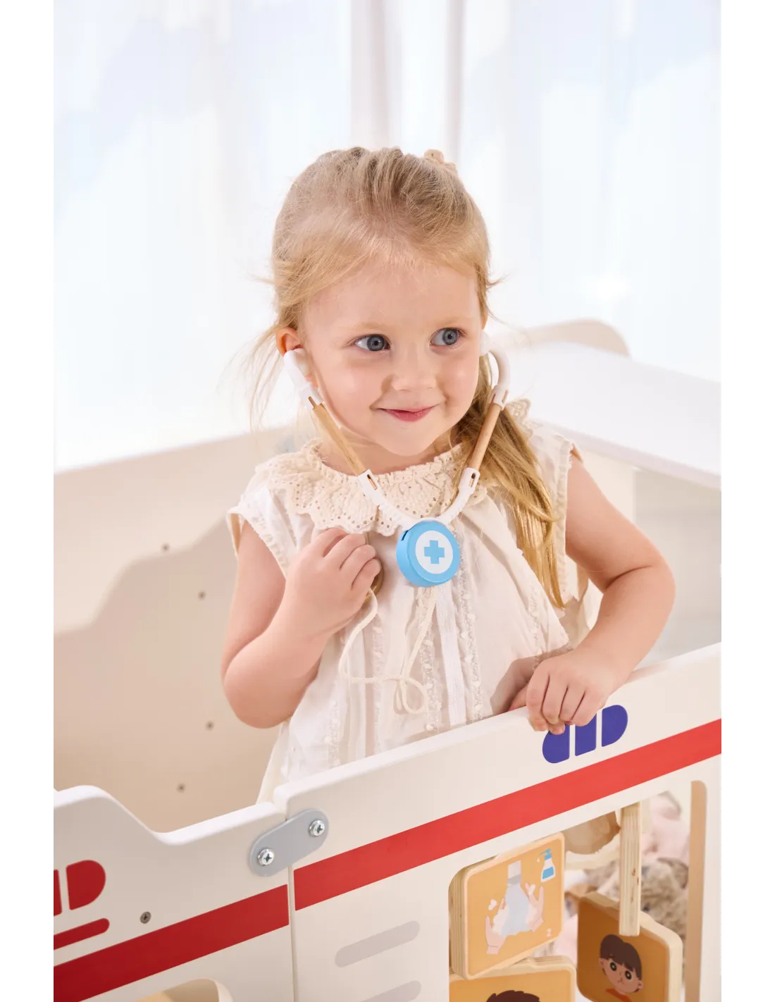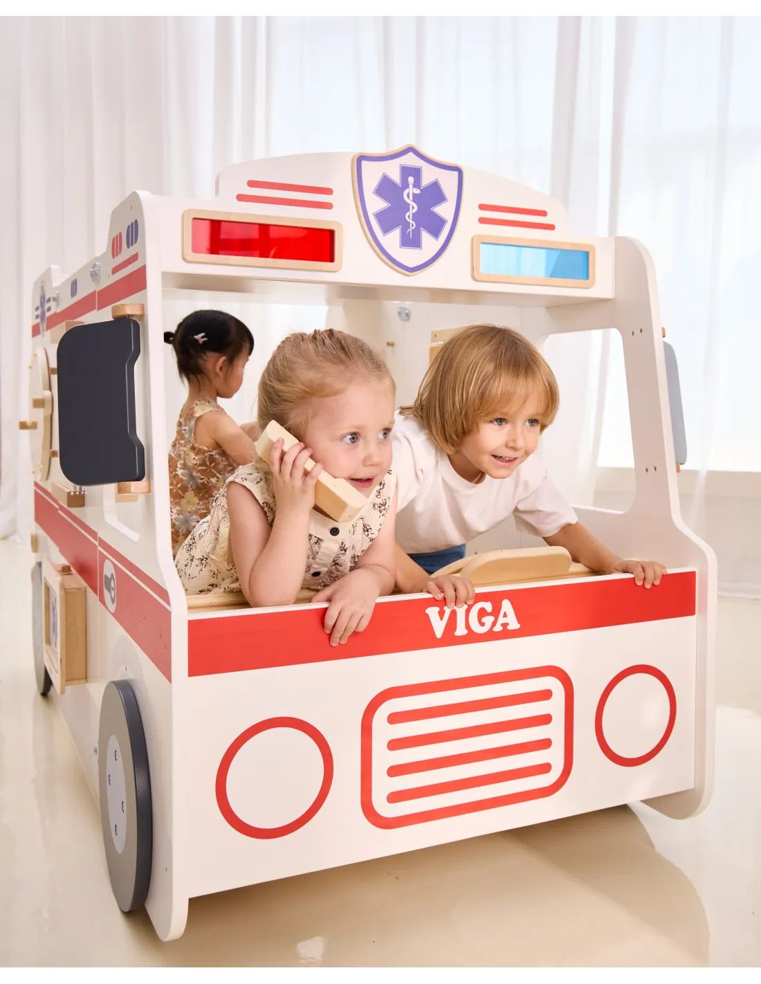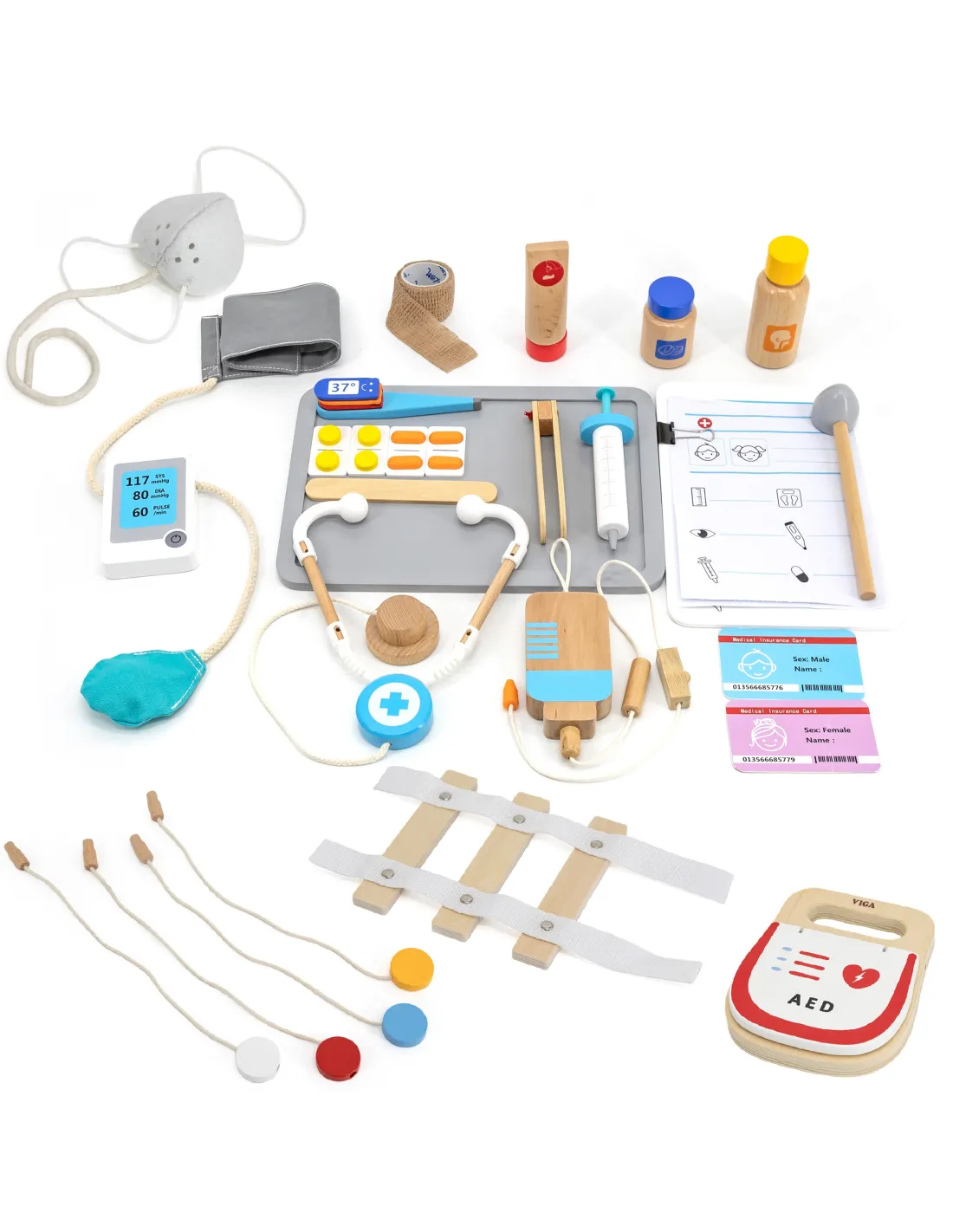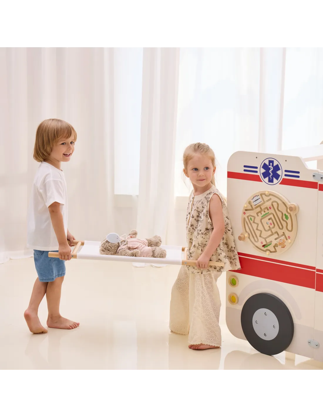 VIGA Large Wooden Ambulance Set Ambulance for Small Rescuers Accessories 25 pcs.
