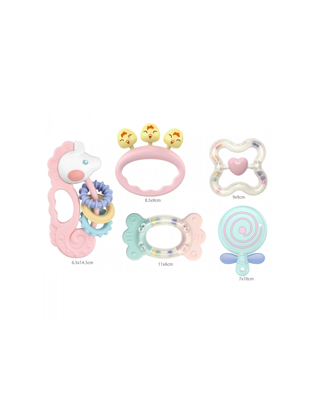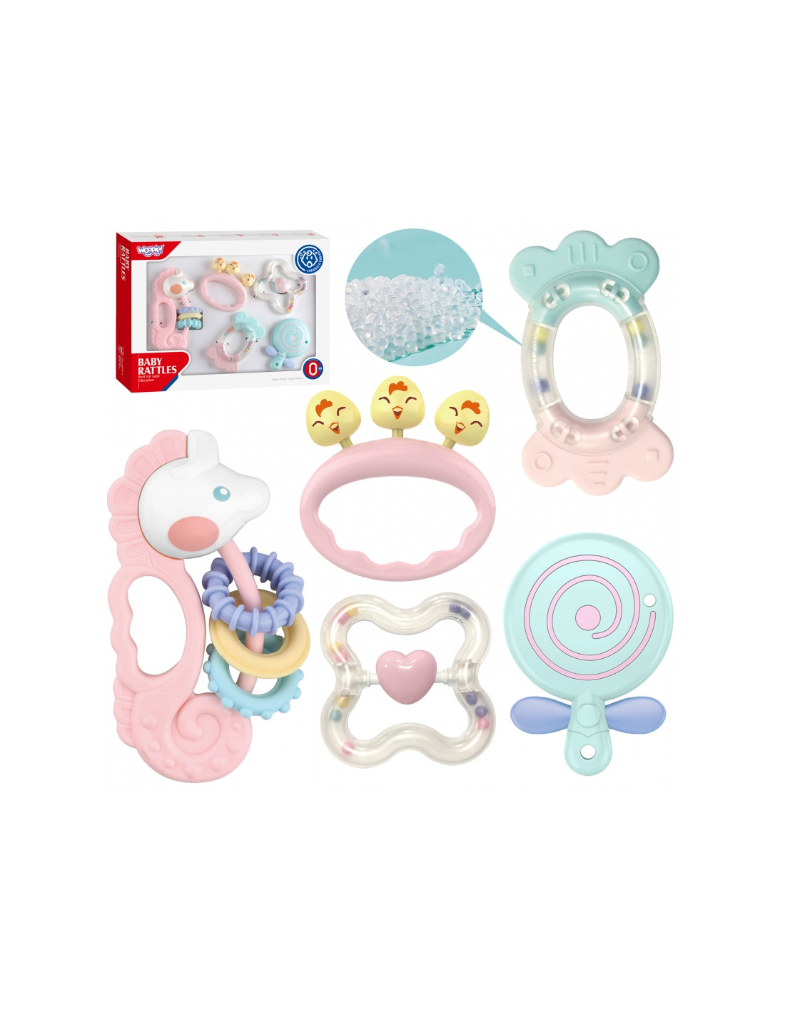 Этот красочный набор прорезывателей и сенсорных погремушек от WOOPIE — отличный выбор для малышей с первых месяцев жизни. Игрушки изготовлены из безопасных и прочных материалов, удобных для детей, и не имеют острых углов. Каждый предмет разработан для развития сенсорных ощущений малыша, развития хватательных навыков и облегчения прорезывания зубов. Характеристики: